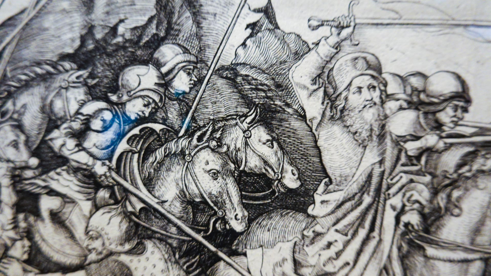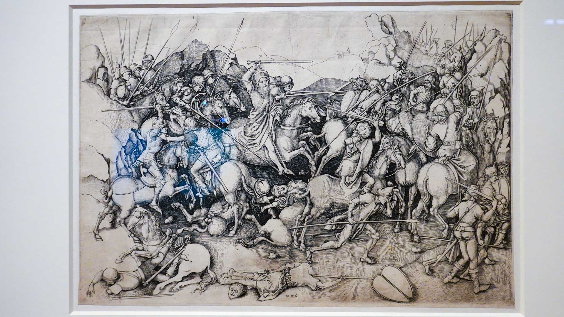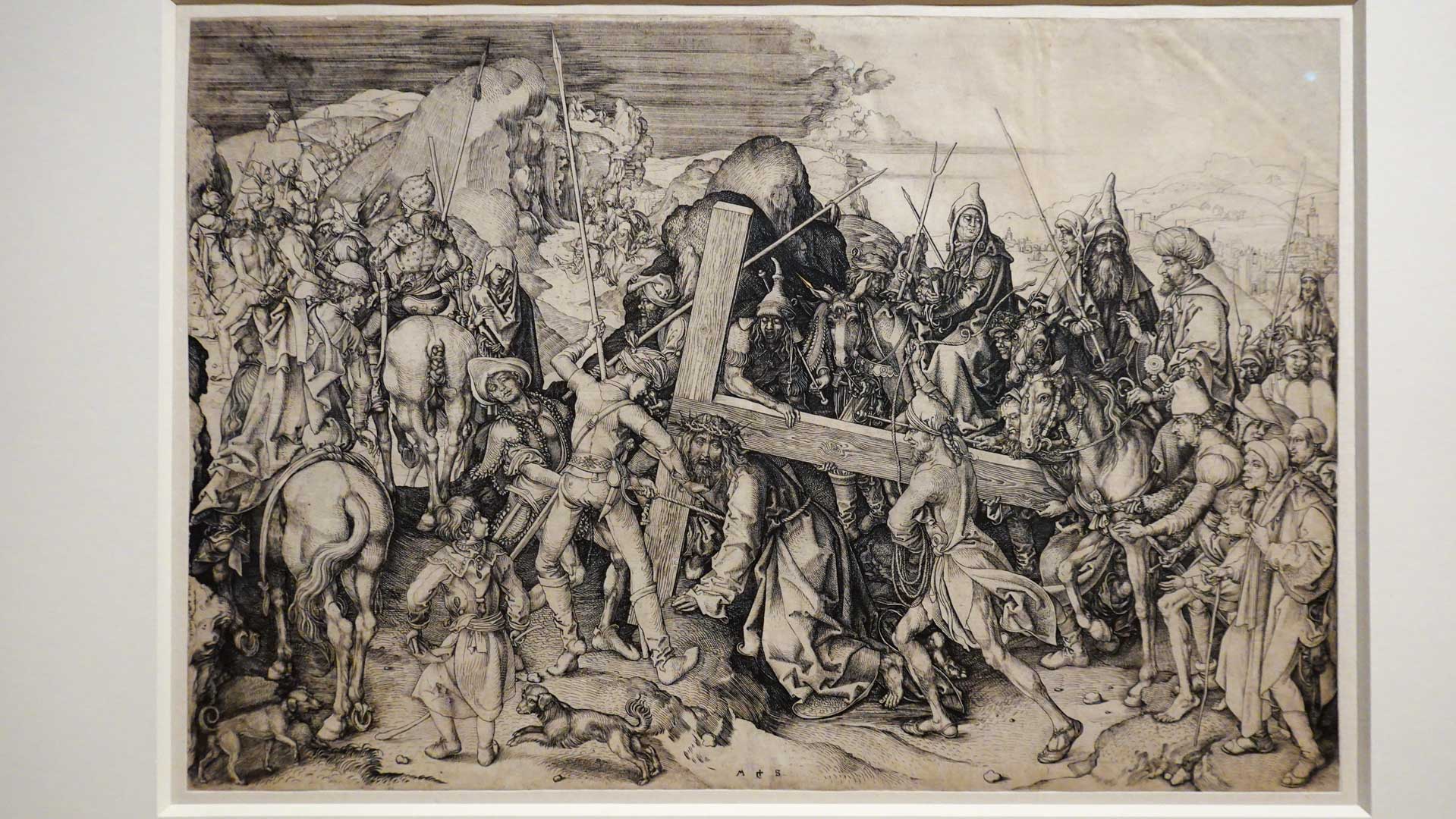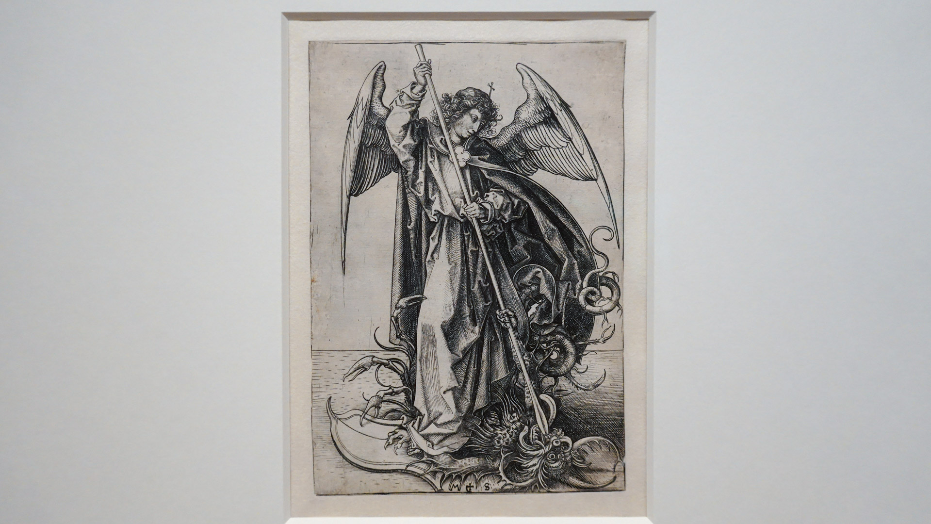 Maître du burin sur cuivre, Martin Schongauer en porte la pratique à un degré exceptionnel de précision et de profondeur, modulant les tailles pour obtenir des effets de lumière, de volume et de matière proches de la peinture.