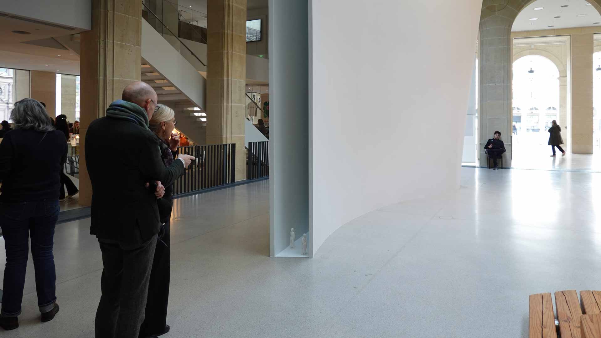 La Fondation Cartier pour l’art contemporain quitte son ancien site du boulevard Raspail pour s’installer au 2, place du Palais-Royal dans un bâtiment haussmannien du XIXᵉ siècle face au Louvre. De nouveaux espaces d’exposition, avec un dispositif architectural modulable autour de plateformes mobiles qui se traduisent par une scénographie confuse et des parcours illisibles.Les artistes