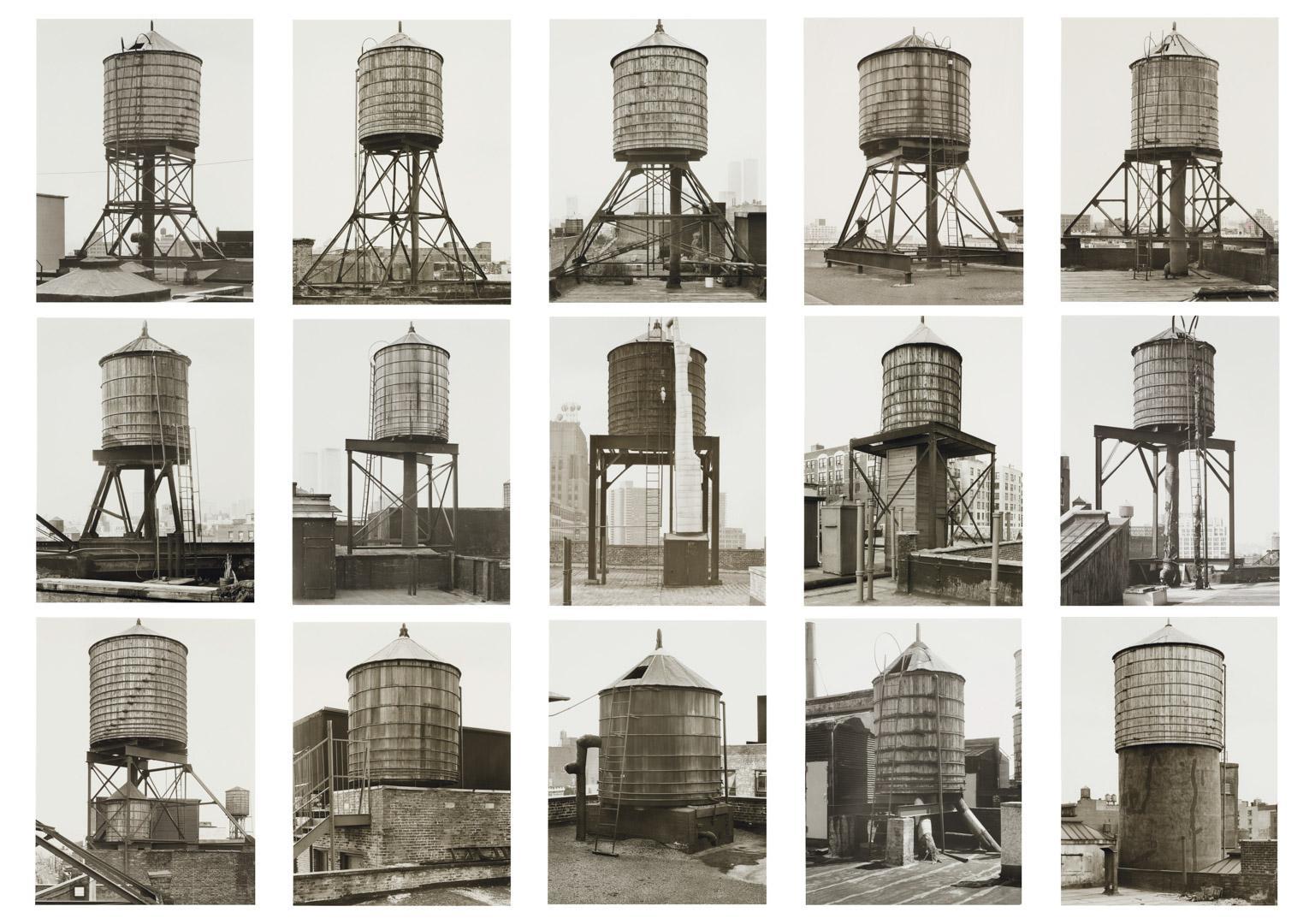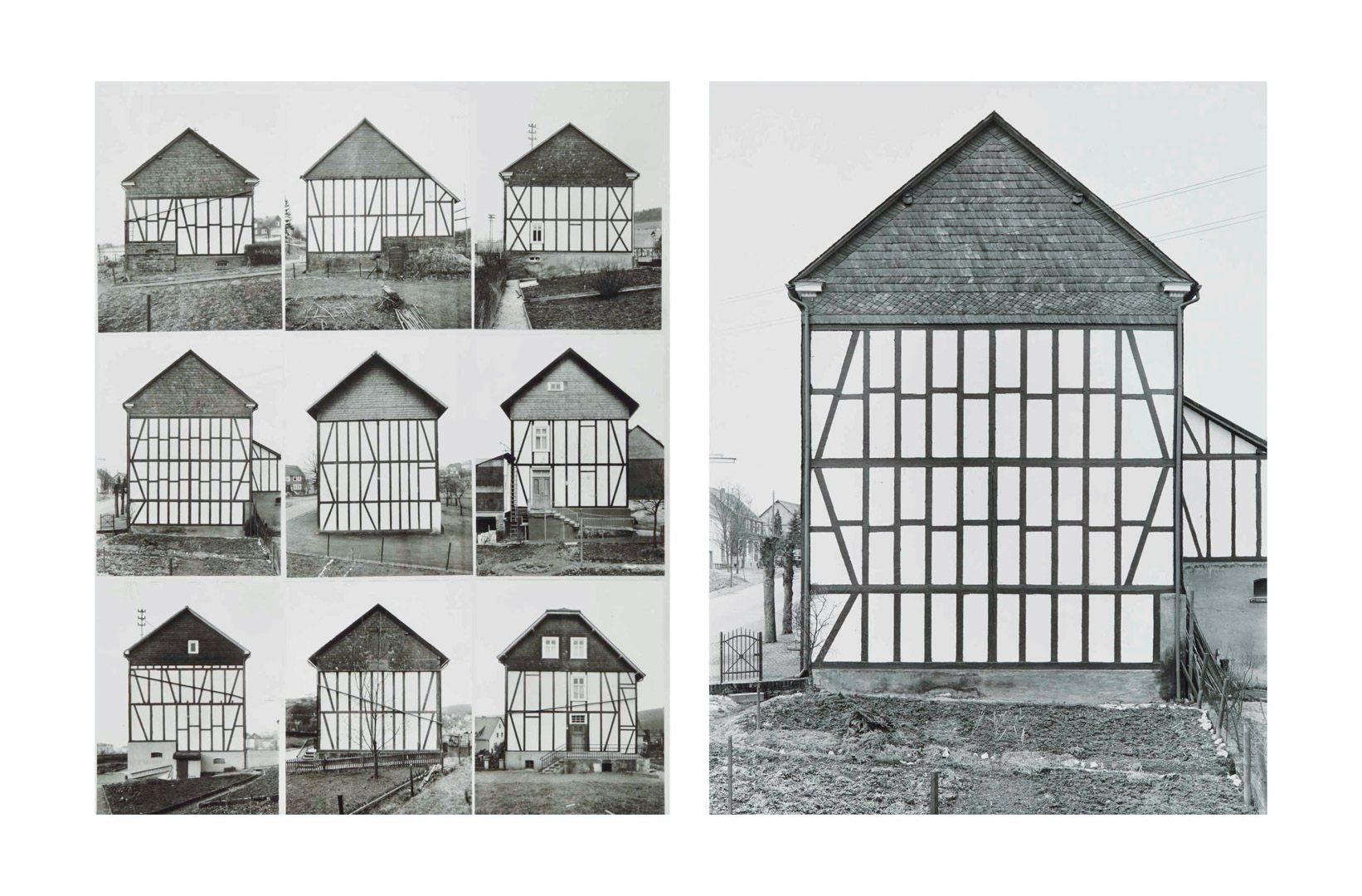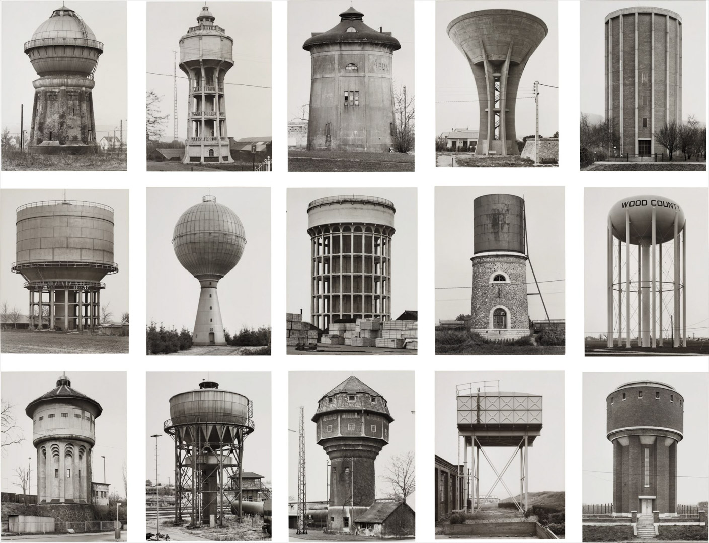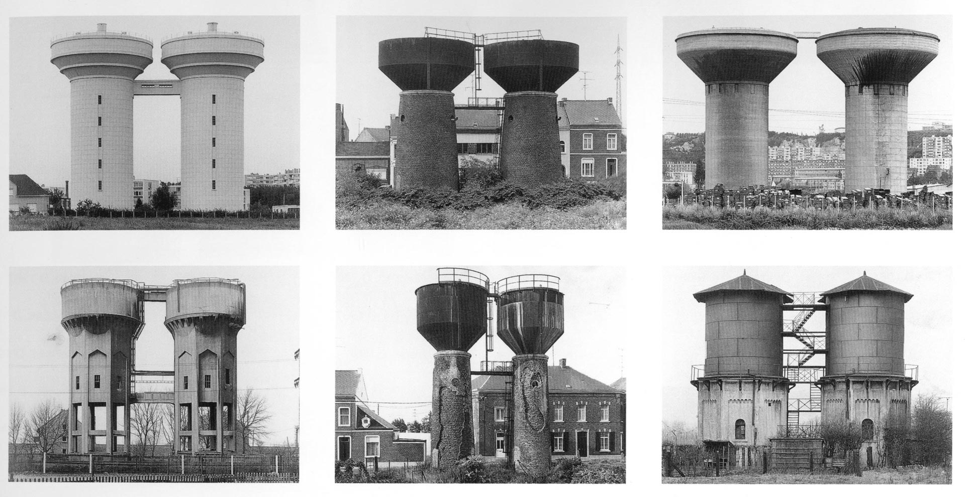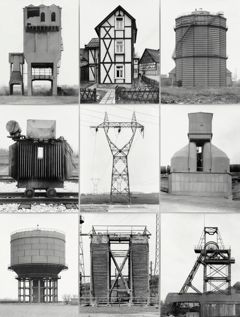Leur apport décisif réside dans la méthode typologique : les images ne sont jamais pensées isolément mais comme éléments d’un ensemble. Présentées en grilles, elles permettent une comparaison systématique qui fait apparaître des variations à l’intérieur de formes apparemment similaires. Chaque photographie devient ainsi une unité dans un système de différences, transformant des constructions utilitaires en objets quasi abstraits. Cette logique rapproche leur travail des démarches scientifiques (classification, taxinomie) autant que de certaines formes de l’art conceptuel.