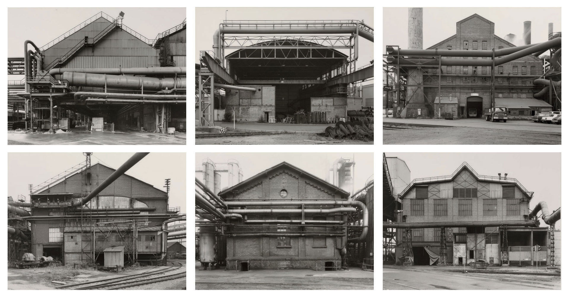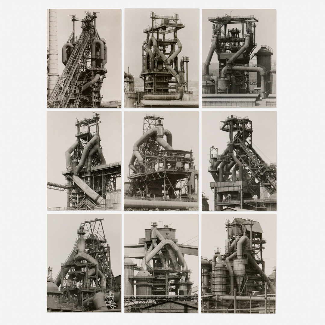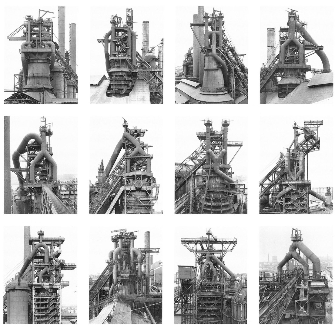 Nés en Allemagne au début des années 1930, ils commencent leur collaboration à la fin des années 1950 dans un contexte de transformation industrielle rapide. Leur projet prend alors la forme d’un inventaire méthodique d’architectures en voie de disparition, parcourant l’Europe et les États-Unis sur plusieurs décennies. À travers cette entreprise, ils documentent non seulement des formes, mais aussi la fin d’un monde industriel, tout en refusant toute dimension nostalgique ou expressive.