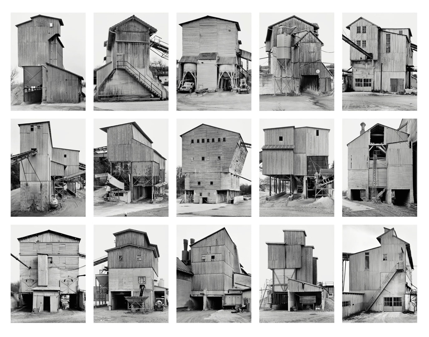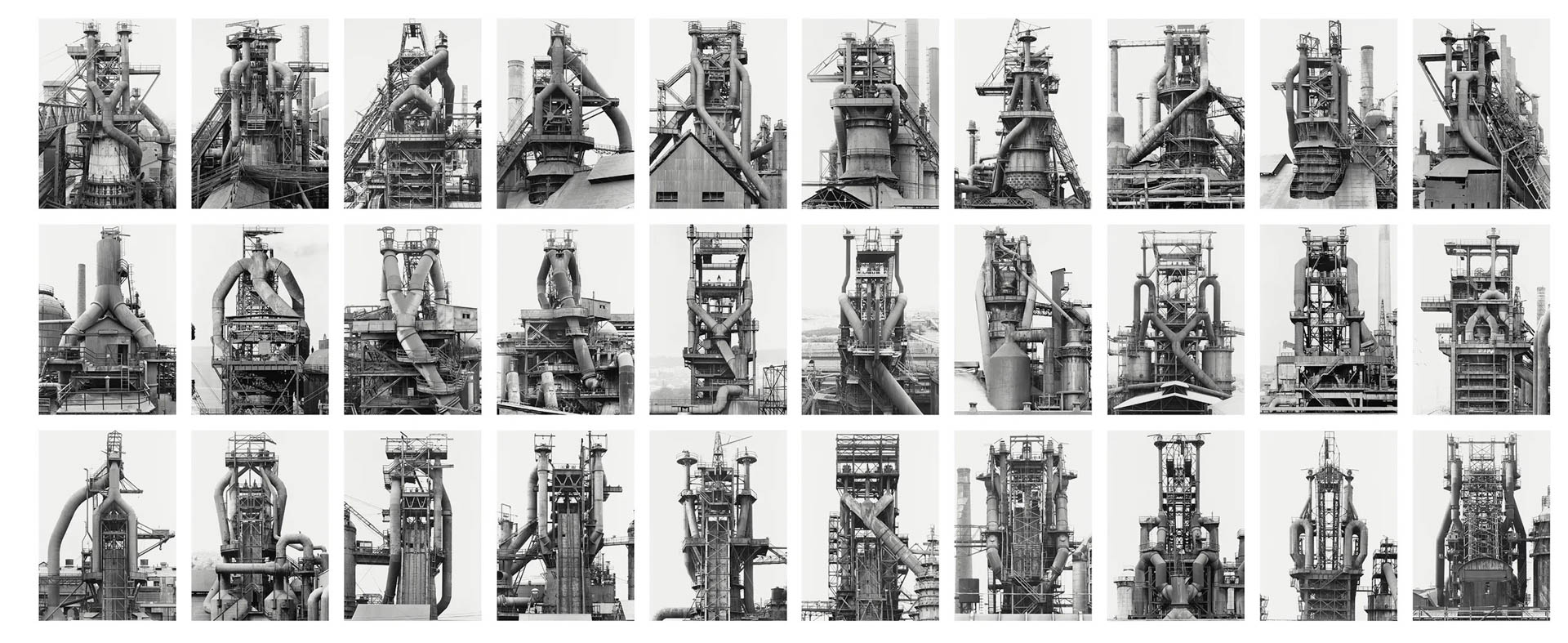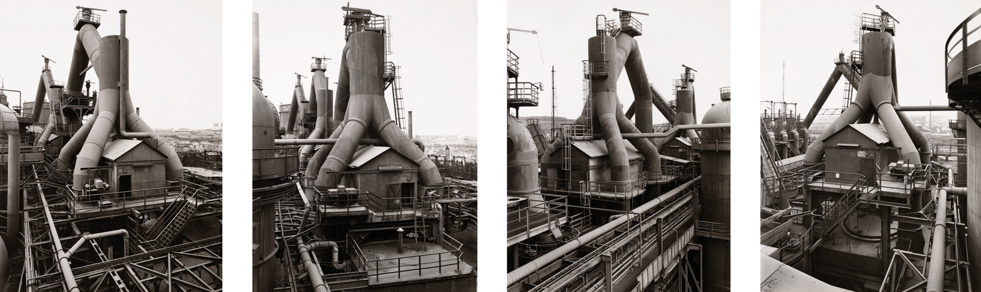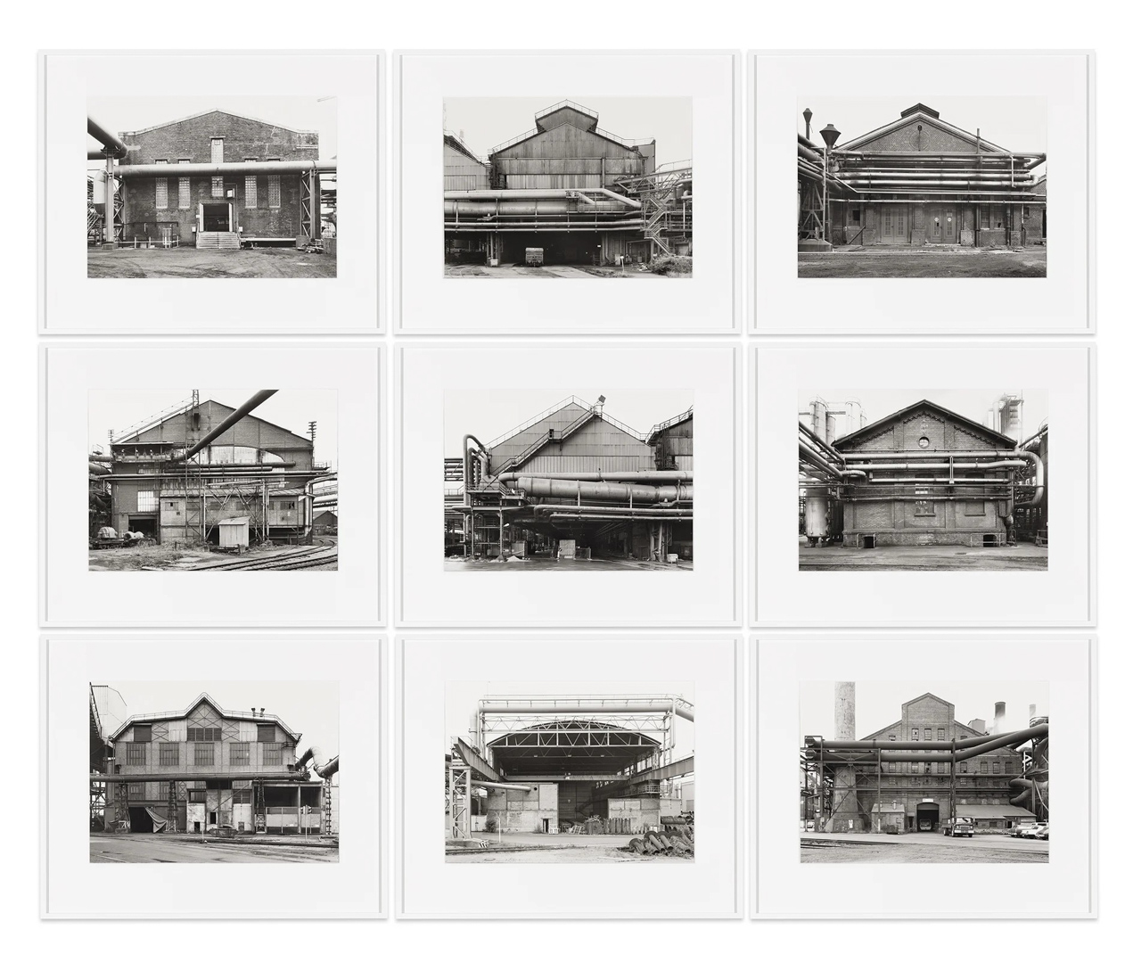 Nés en Allemagne au début des années 1930, ils commencent leur collaboration à la fin des années 1950 dans un contexte de transformation industrielle rapide. Leur projet prend alors la forme d’un inventaire méthodique d’architectures en voie de disparition, parcourant l’Europe et les États-Unis sur plusieurs décennies. À travers cette entreprise, ils documentent non seulement des formes, mais aussi la fin d’un monde industriel, tout en refusant toute dimension nostalgique ou expressive.