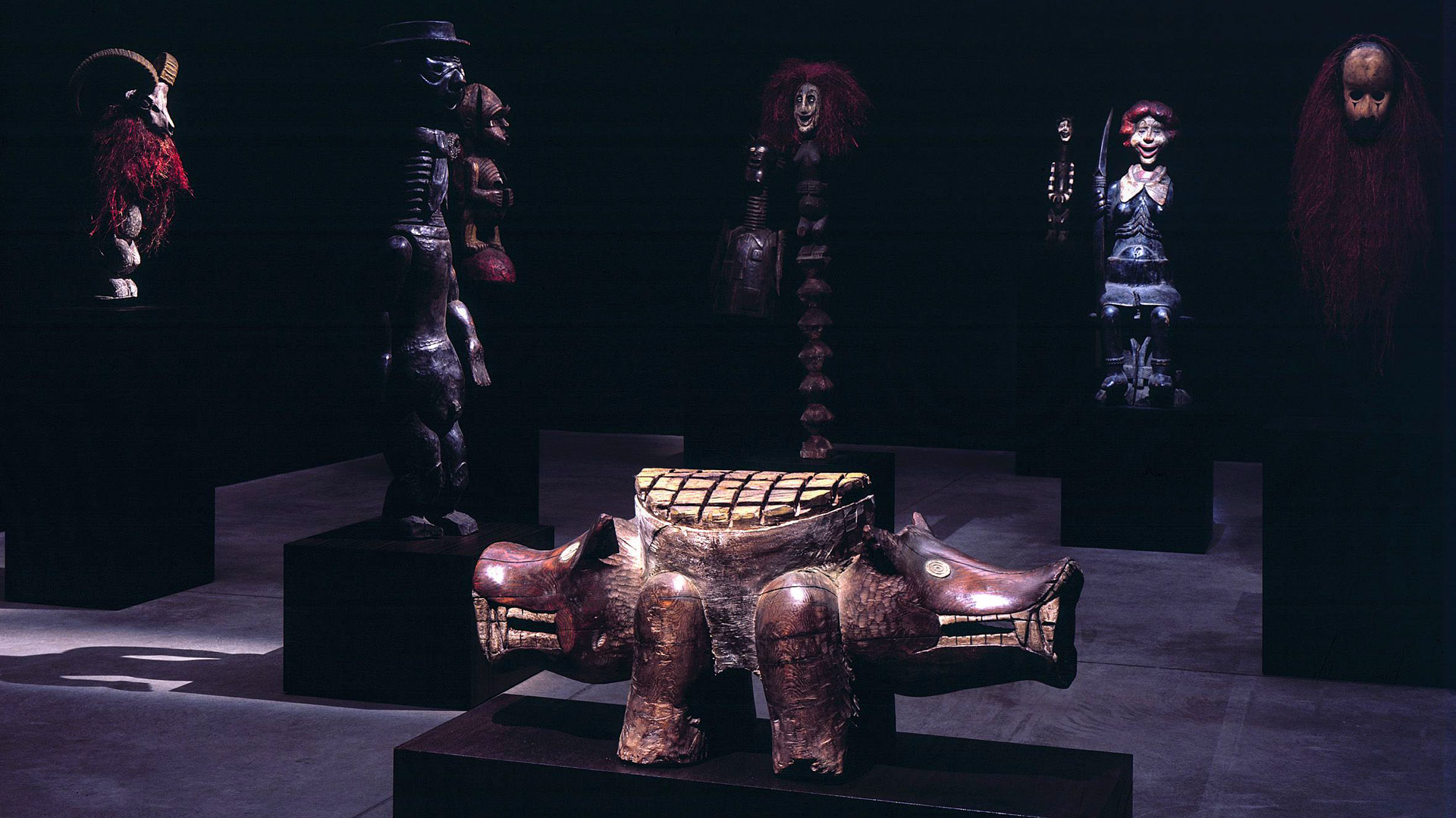 Sous couvert de pastiche et de parodie, cette installation expose la réalité de l’industrie culturelle et souligne que l’art africain, comme toute forme d’art, est soumis aux processus de désacralisation et de marchandisation caractéristiques de notre époque.
