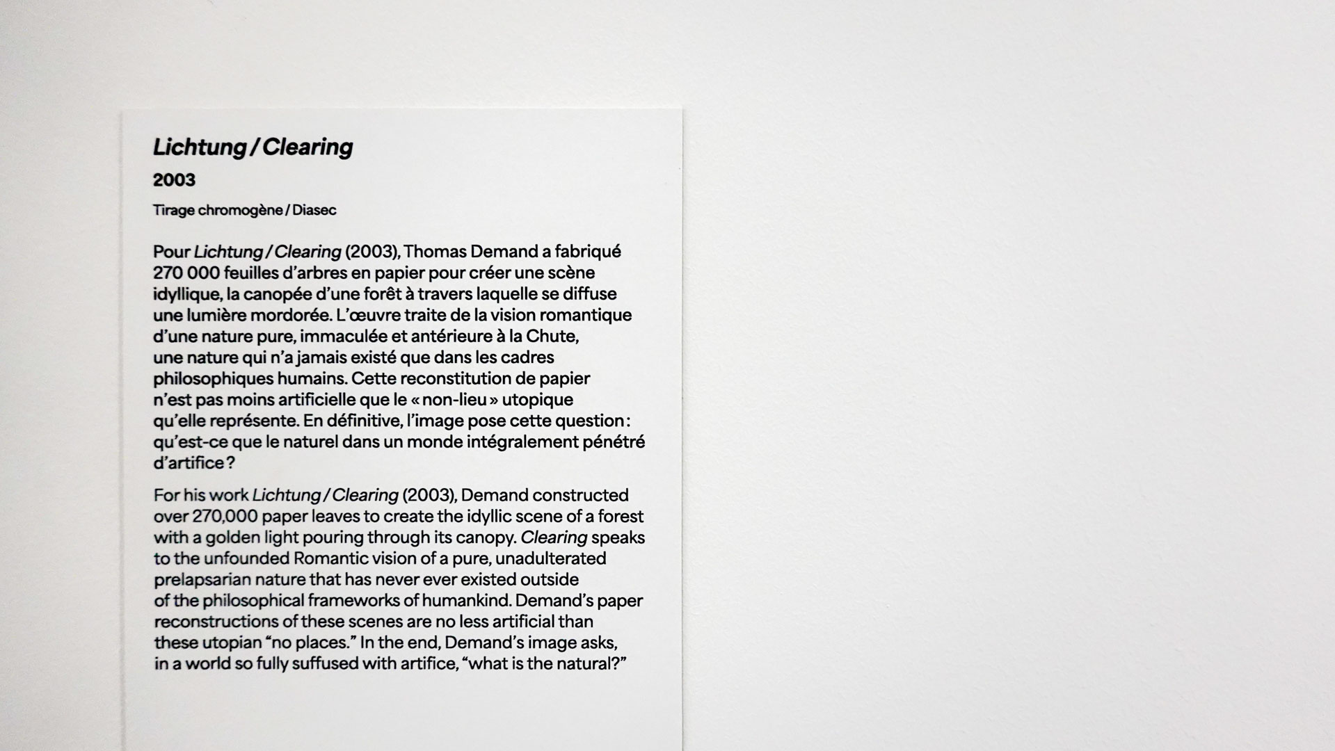 Chaque photographie de Demand semble être un fac-similé précis d'événements médiatiques, tout en remettant en question leur authenticité et leur interprétation. Ce processus révèle l'écart entre la matérialité physique et sa reconstruction par les médias, illustrant ainsi le concept de "bégaiement de l’histoire" où les images se répètent et se transforment, sans jamais capturer entièrement la complexité du réel. L'exposition offre une plongée captivante dans l'univers conceptuel et visuel fascinant de Thomas Demand, explorant les limites de la représentation et de la mémoire collective à l'ère numérique."