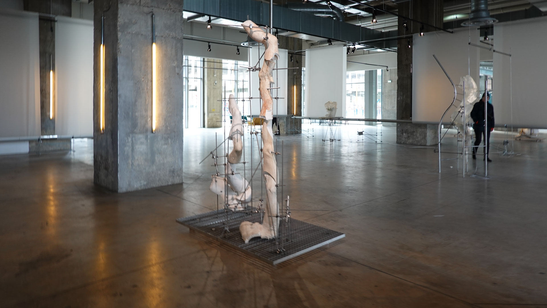 Les fragments ainsi obtenus sont manipulés, augmentés, par la pose de broches, de prothèses, des assemblages et autres interventions chirurgicales. Ils deviennent corps de verre, d’argile et de gypse, à travers la production de tirages qui ont mobilisé de nombreux artisans et nécessité la mise au point d’une ingénierie et de savoir-faire spécialisés. Les figures qui en naissent, hybridées par ces opérations successives, deviennent peu à peu des projections spectrales, des chimères, les membres d’une société post-humaine où cohabitent et fusionnent les corps dans leur diversité.