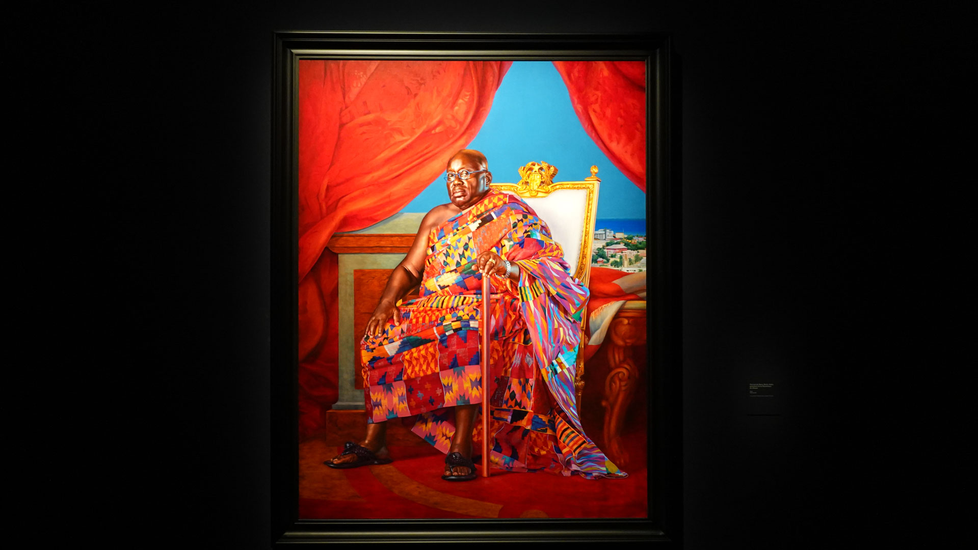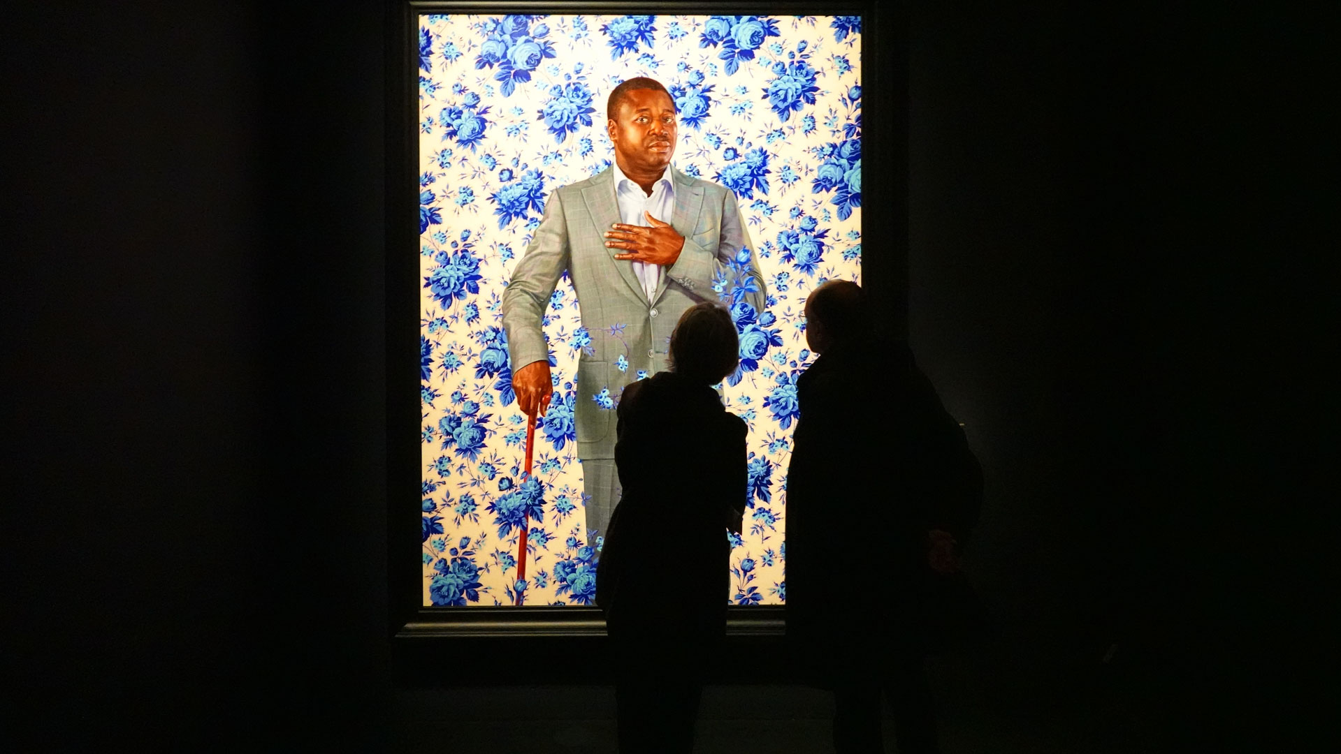 Kehinde Wiley réalise des peintures hyperréalistes à l’huile dans lesquelles des personnages vêtues de vêtements contemporains sont représentées sur des arrière-plans composés de motifs colorés et variés de tissus wax hollandais et de décors Renaissance, rococo, baroque, soulignant l'héritage culturel et la modernité des modèles.