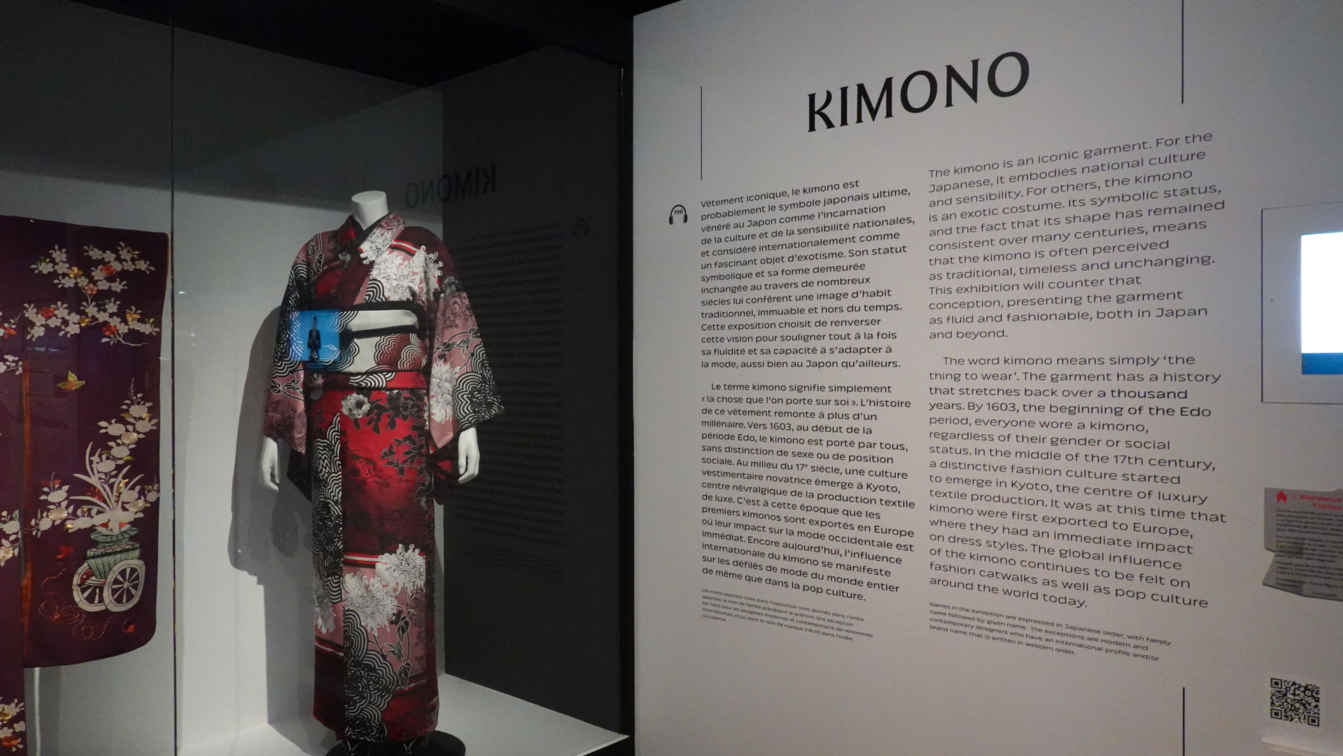 "Apparu il y a plus de mille ans, le kimono – littéralement "ce qui se porte" - incarne aux yeux des Japonais la culture et la sensibilité nationales.