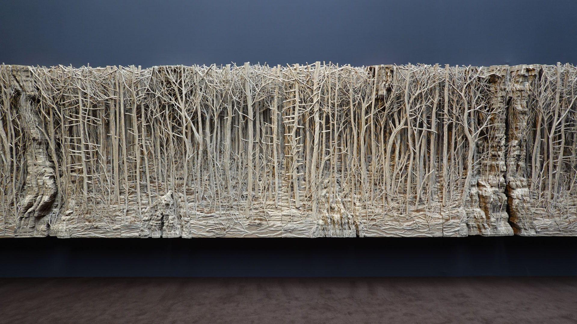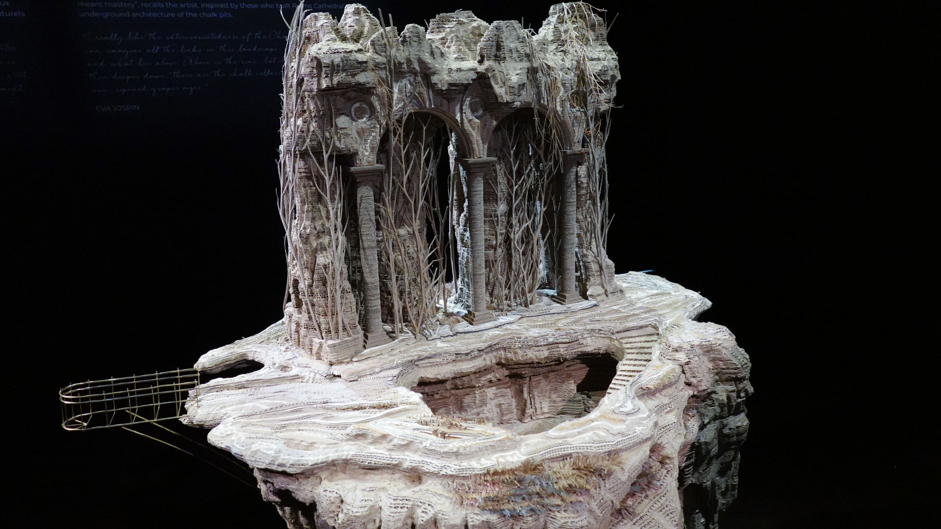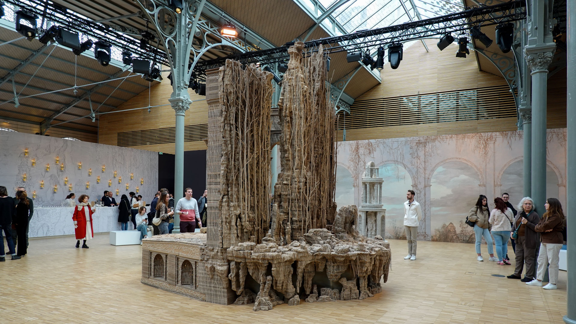 Panorama, une installation d’Éva Jospin qui place le public au coeur d’une forêt imaginaire, écho à la peinture du XVIIIe siècle et au peintre Hubert Robert. La structure de polymiroirs qui accueille l’installation reflète l’architecture de la Cour carrée.