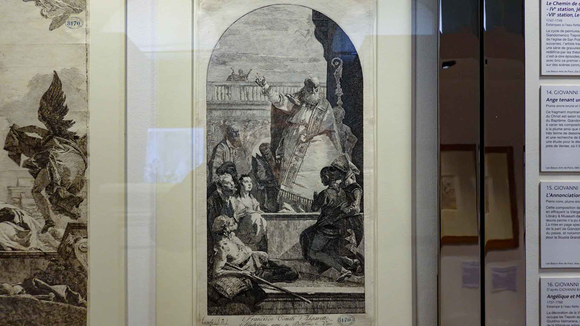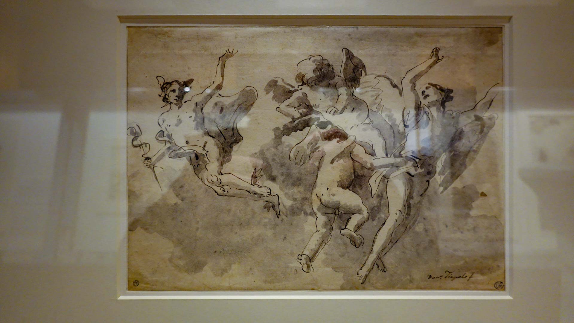 Giovanni Domenico Tiepolo (1727-1804), son fils aîné, développe un style propre, se concentrant sur la peinture de genre et les gravures humoristiques. Il est connu pour les séries de fresques de la Villa Valmarana et ses dessins de Pulcinella, montrant une clarté narrative et une sensibilité aux aspects quotidiens et humoristiques de la vie.