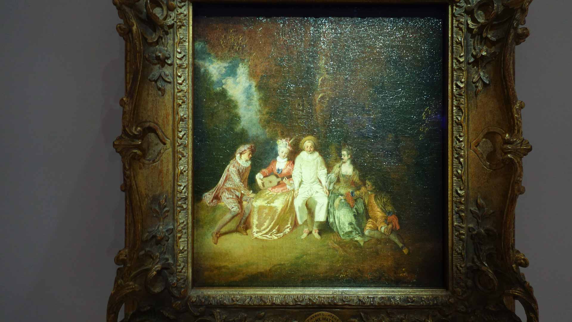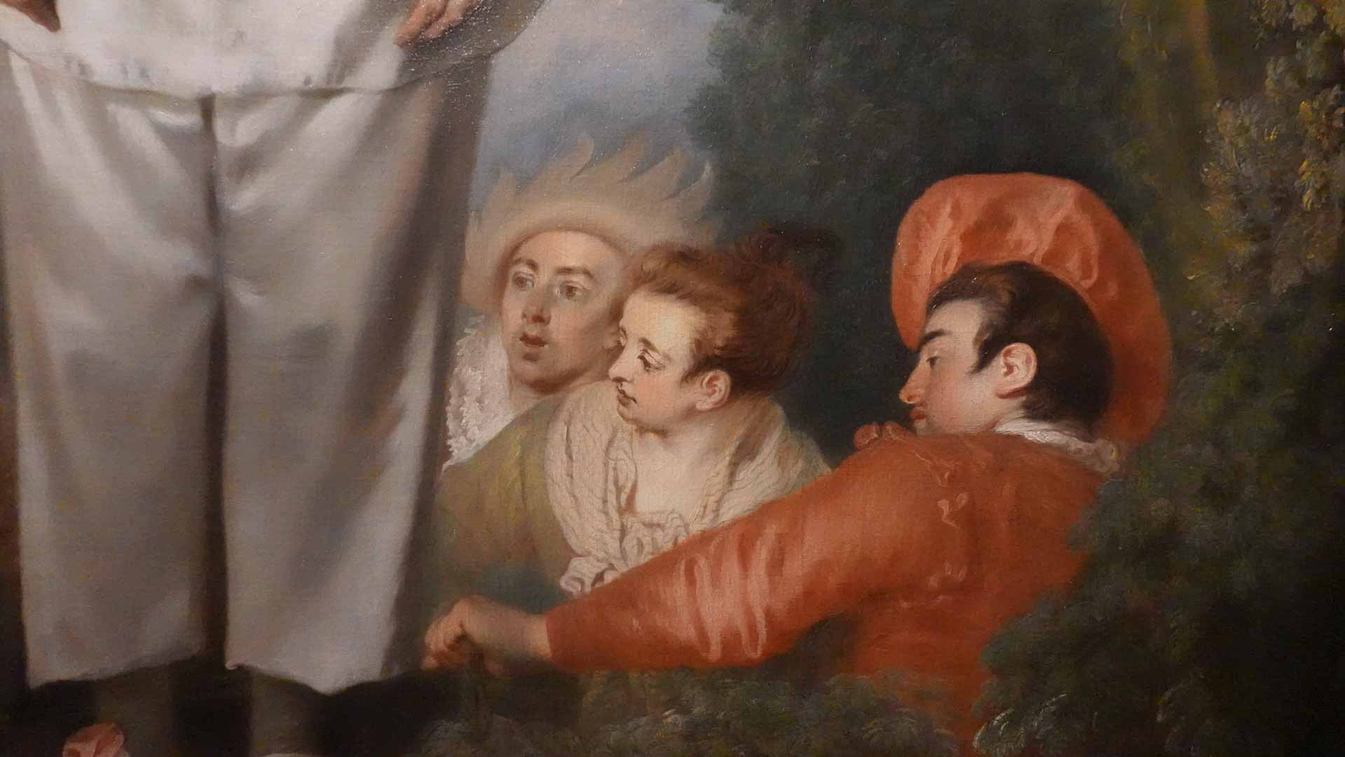 "On ne sait rien de l’œuvre avant sa découverte par Dominique Vivant Denon (1747-1825), artiste et collectionneur, directeur du musée du Louvre sous Napoléon. Elle est très vite considérée comme un chef-d’œuvre de Watteau et célébrée par les écrivains et historiens de l’art de renom. Elle incarne pour beaucoup une certaine image du XVIIIe siècle, tour à tour, selon les auteurs et les époques, malicieuse, cynique ou mélancolique. Son prestige va considérablement appuyer le retour en grâce de l’art du XVIIIe siècle à l’époque de Manet et de Nadar.