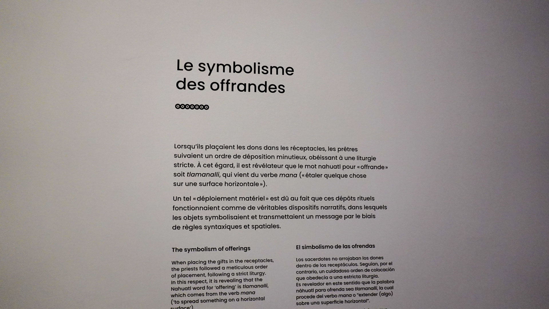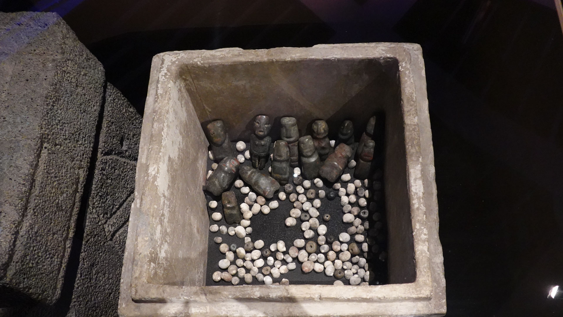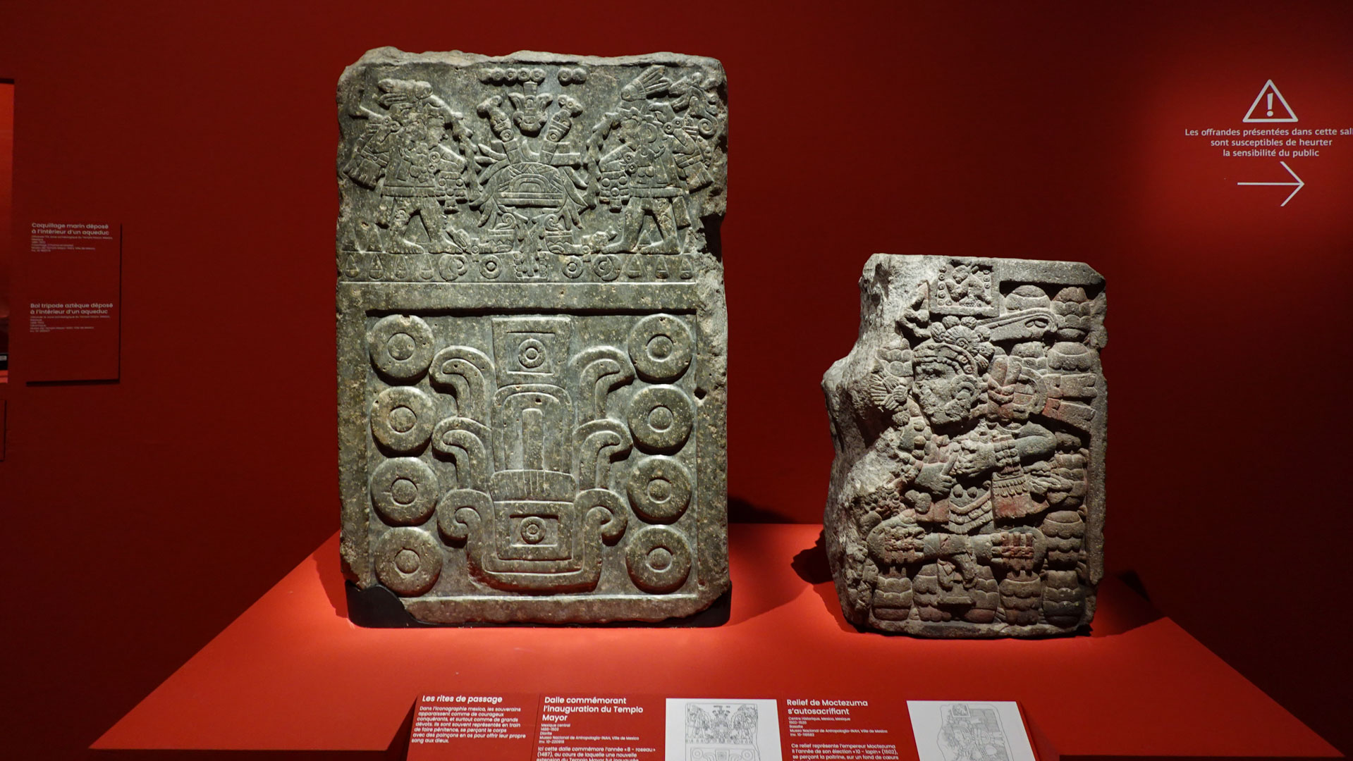 Minéraux, plantes,objets culturels, animaux et êtres humains sacrifiés témoignent du profond respect et de la dévotion du peuple mexica envers ses dieux. Déposées dans des cavités creusées sous les places ou à l’intérieur de coffres en pierre, ces offrandes étaient destinées à apaiser les divinités et à obtenir leur bienveillance.