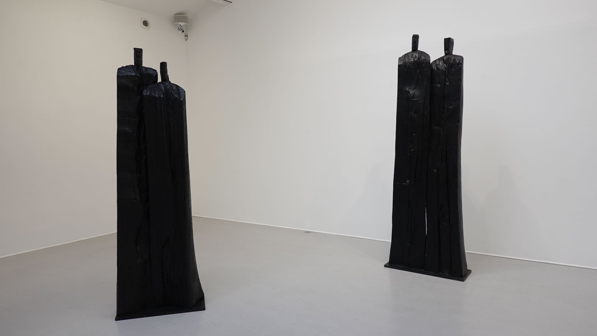 Christian Lapie, né en 1955 à Reims, est connu pour ses sculptures monumentales en bois brûlé ou noirci qui évoquent des figures humaines stylisées, sans visages, ou des formes totémiques. Lapie installe ses œuvres dans des lieux variés, allant de paysages naturels à des sites urbains ou historiques, où les sculptures semblent surgir de terre comme des gardiens silencieux de la mémoire.