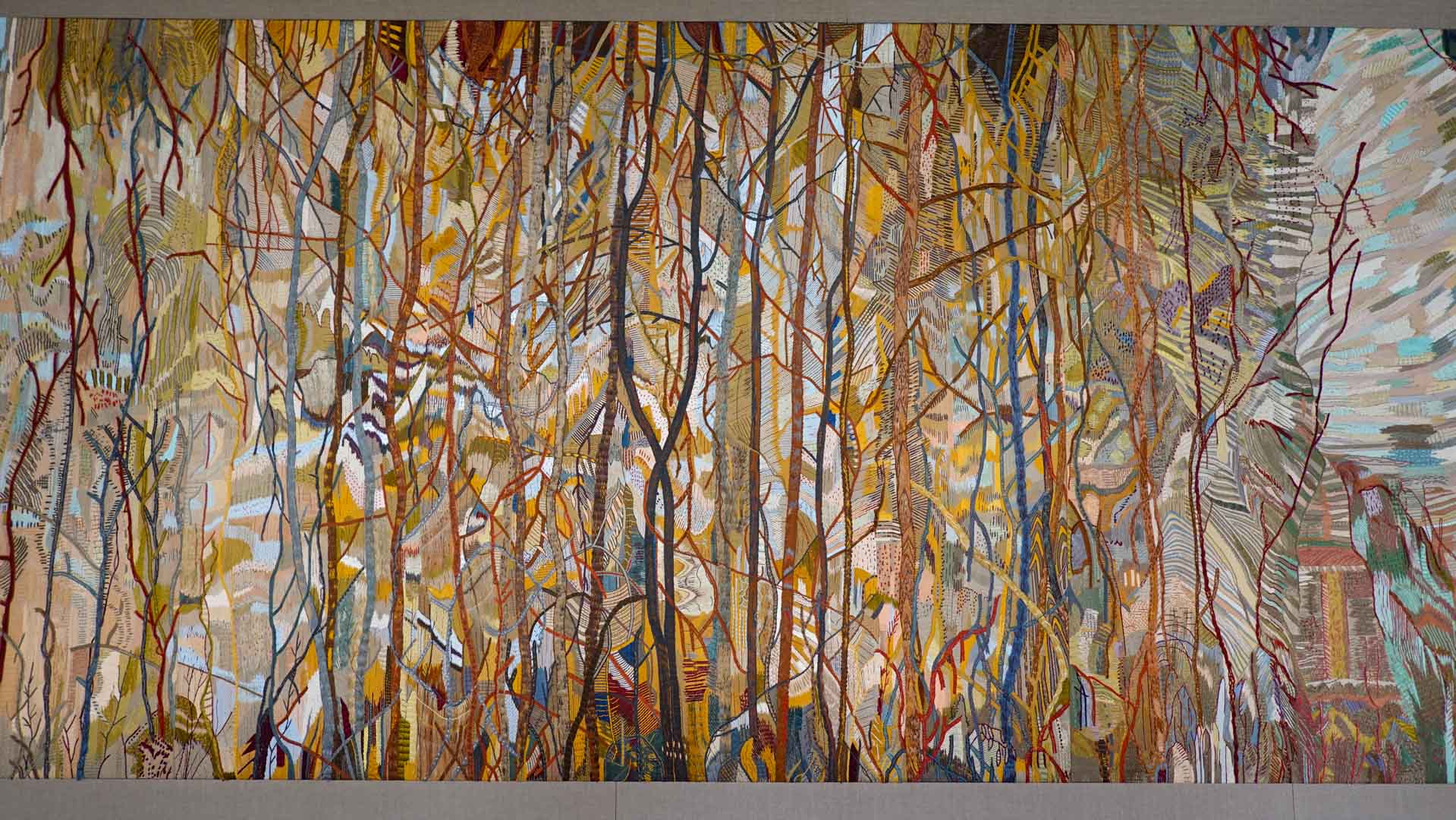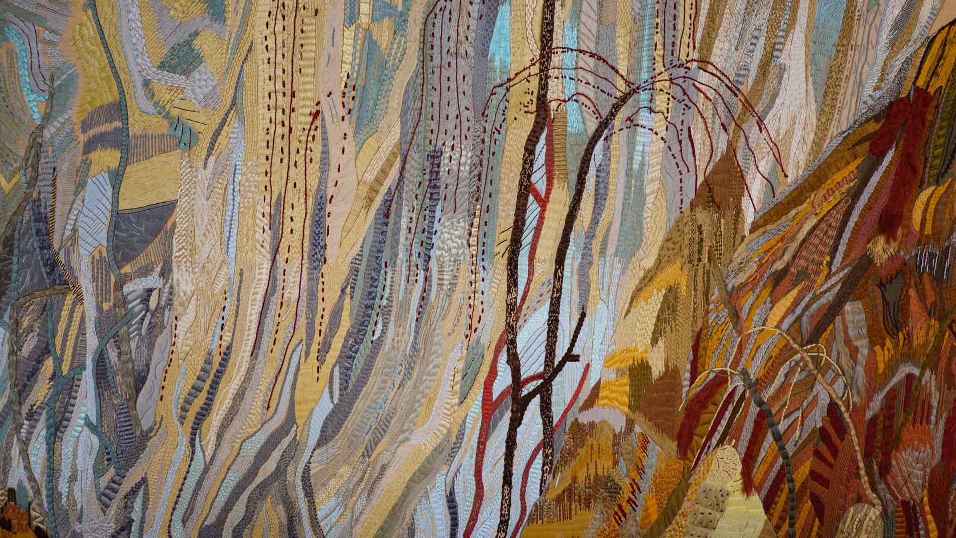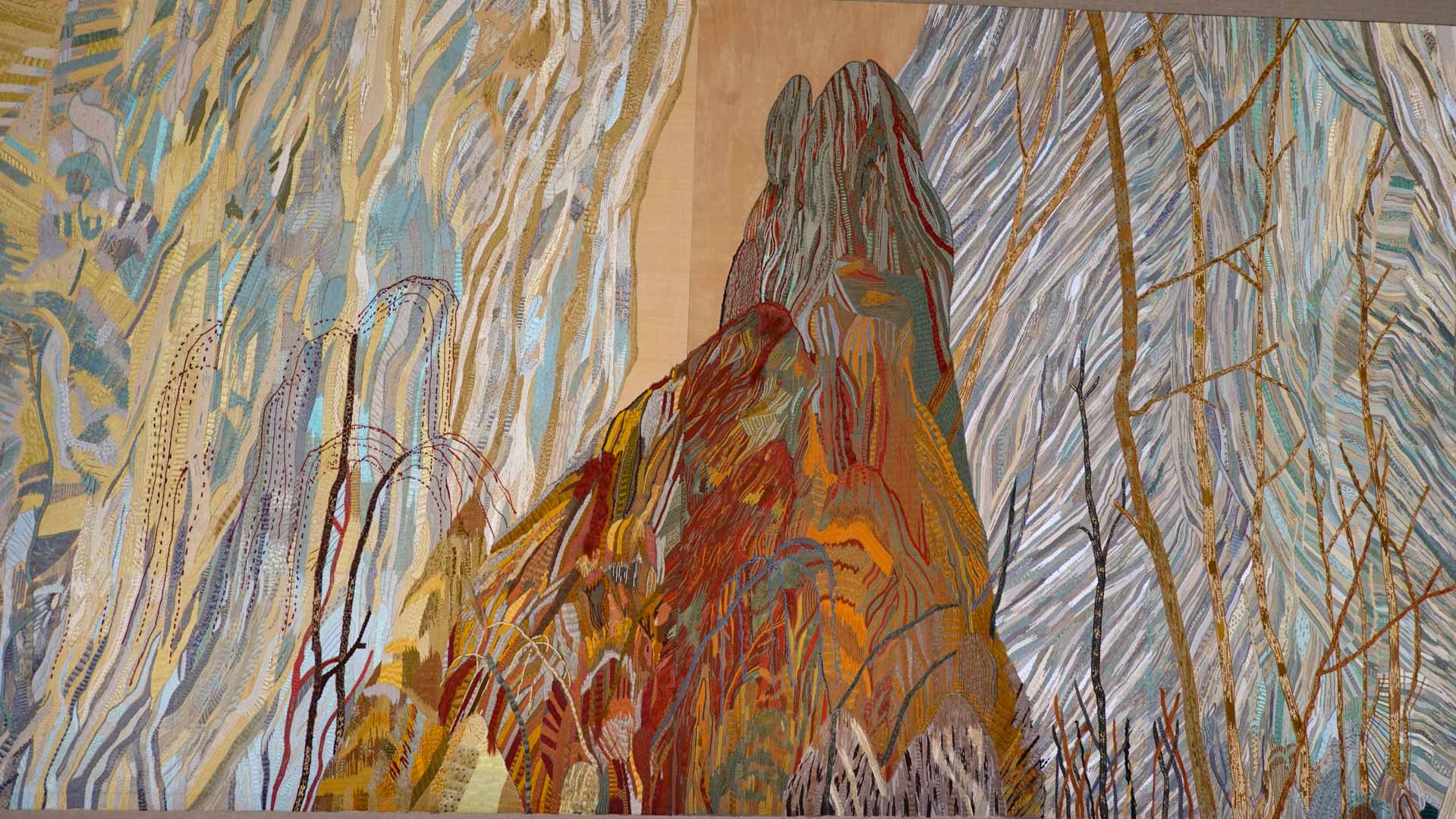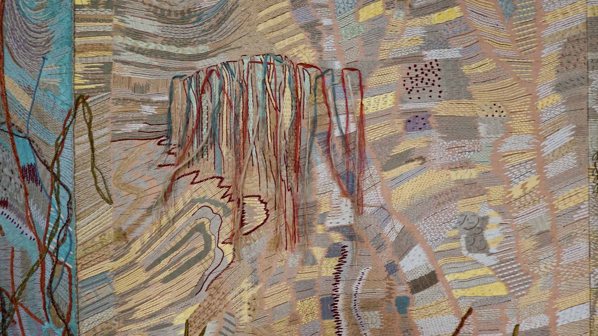 Avec l'ajout d'un panneau brodé inspiré des bosquets versaillais, notamment les Bains d'Apollon, Eva Jospin établit un dialogue entre l'art du jardin et la broderie.