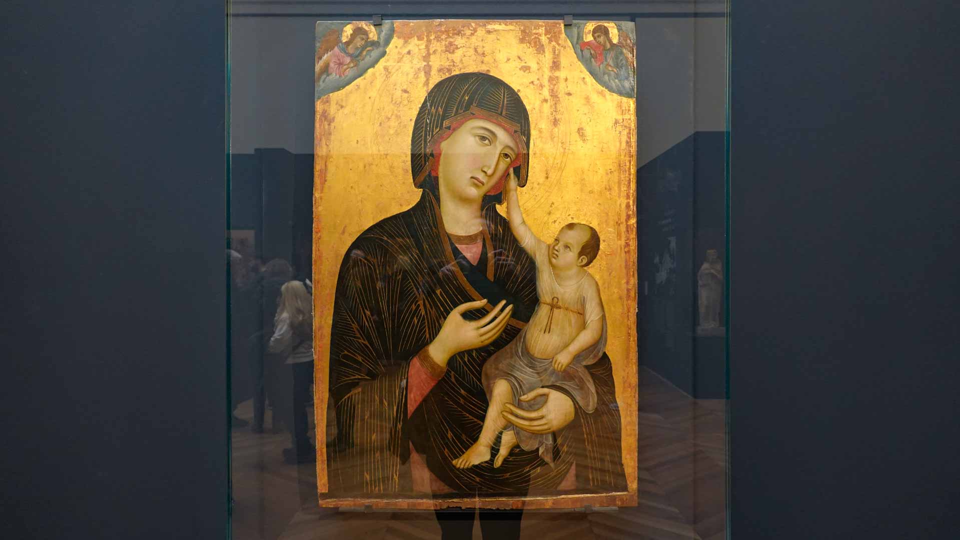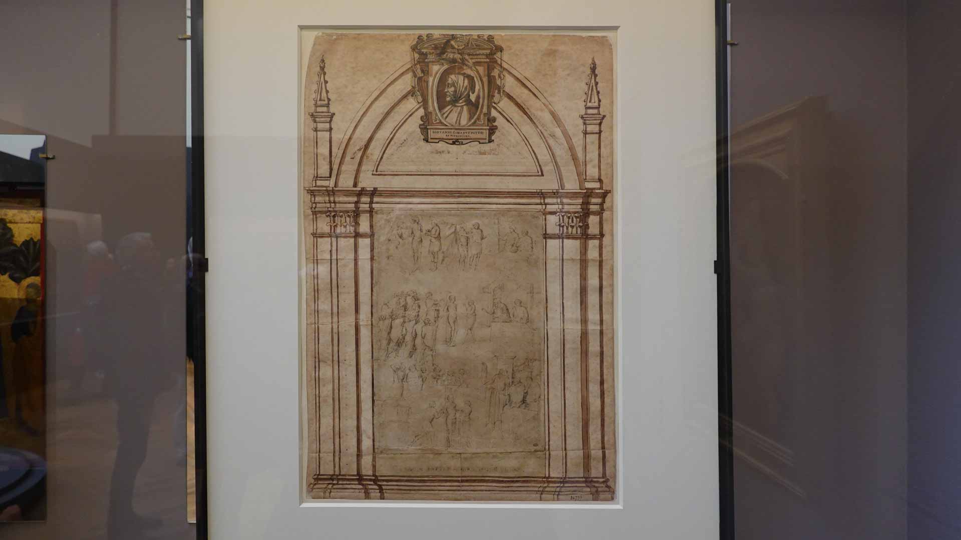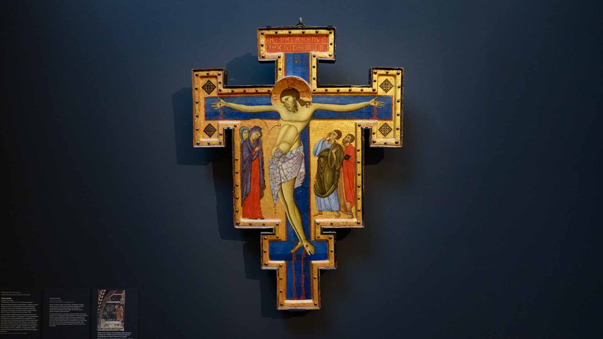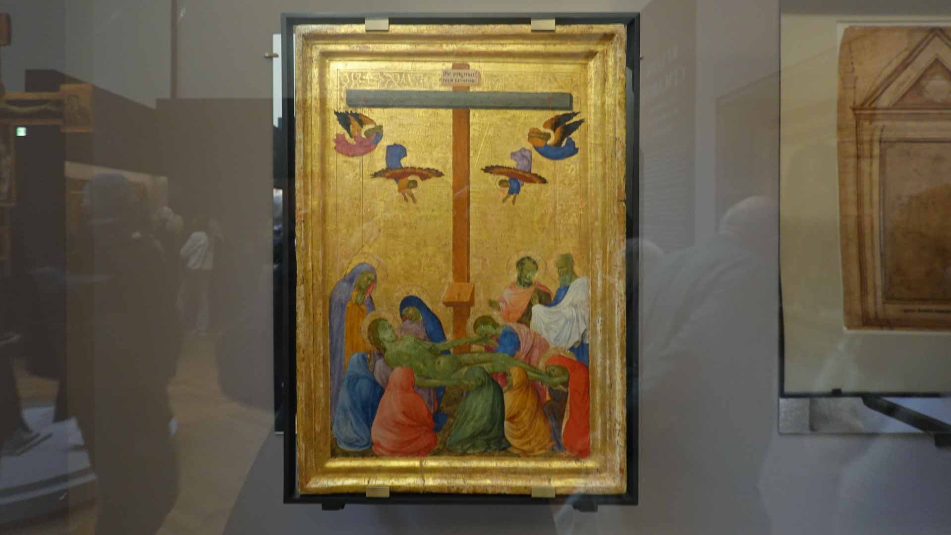 Nos connaissances sur Cenni di Pepo, dit Cimabue, sont très minces, comme le rappelle le prologue de l’exposition : on ignore jusqu’à la signification de son surnom et seuls quelques documents d’archive permettent d’identifier l’artiste et de donner de rares repères dans son parcours. C’est Dante, dans un passage de La Divine Comédie, qui forge le mythe au début du XIVe siècle : en établissant son importance, il est à l’origine de la fascination que le nom de Cimabue exercera des Médicis jusqu’à aujourd’hui.