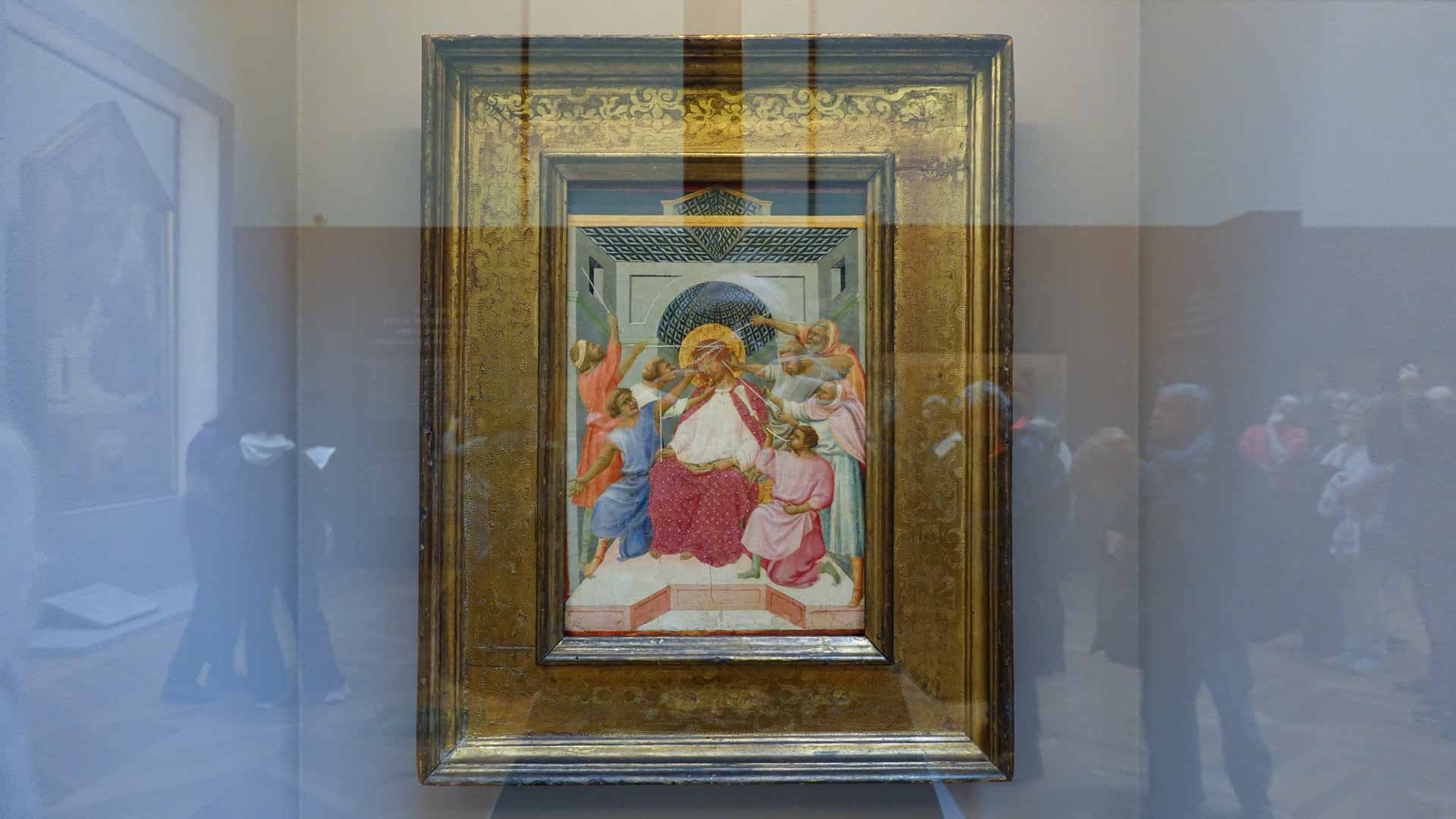 La "Dérision du Christ" explore la souffrance humaine et la compassion divine. Cette peinture illustre la scène de la Passion du Christ, mettant en lumière la douleur et l'humilité du Christ face à la moquerie et à la violence. Elle reflète la capacité de Cimabue à transmettre des émotions profondes en humanisant les figures religieuses.