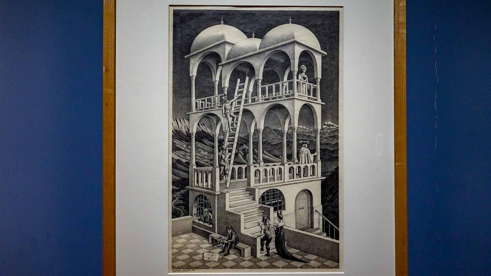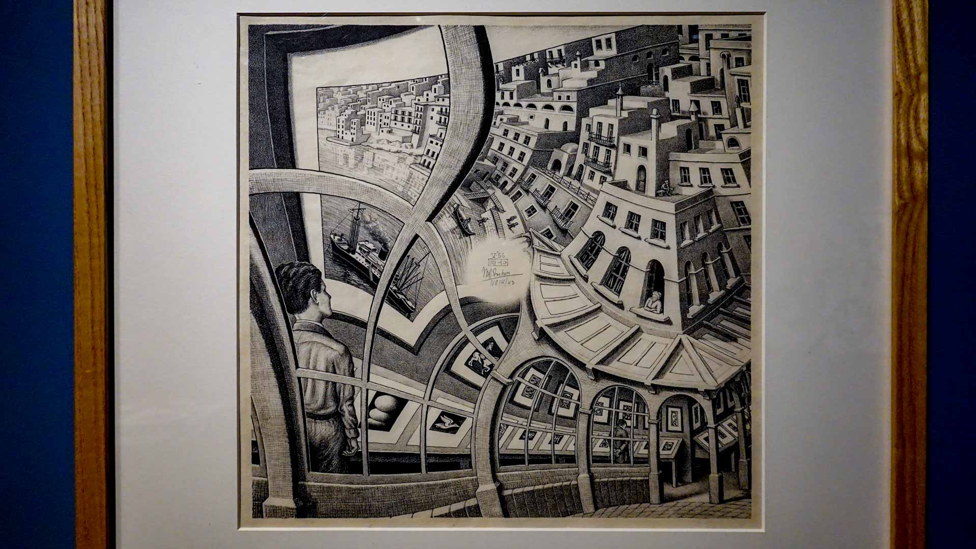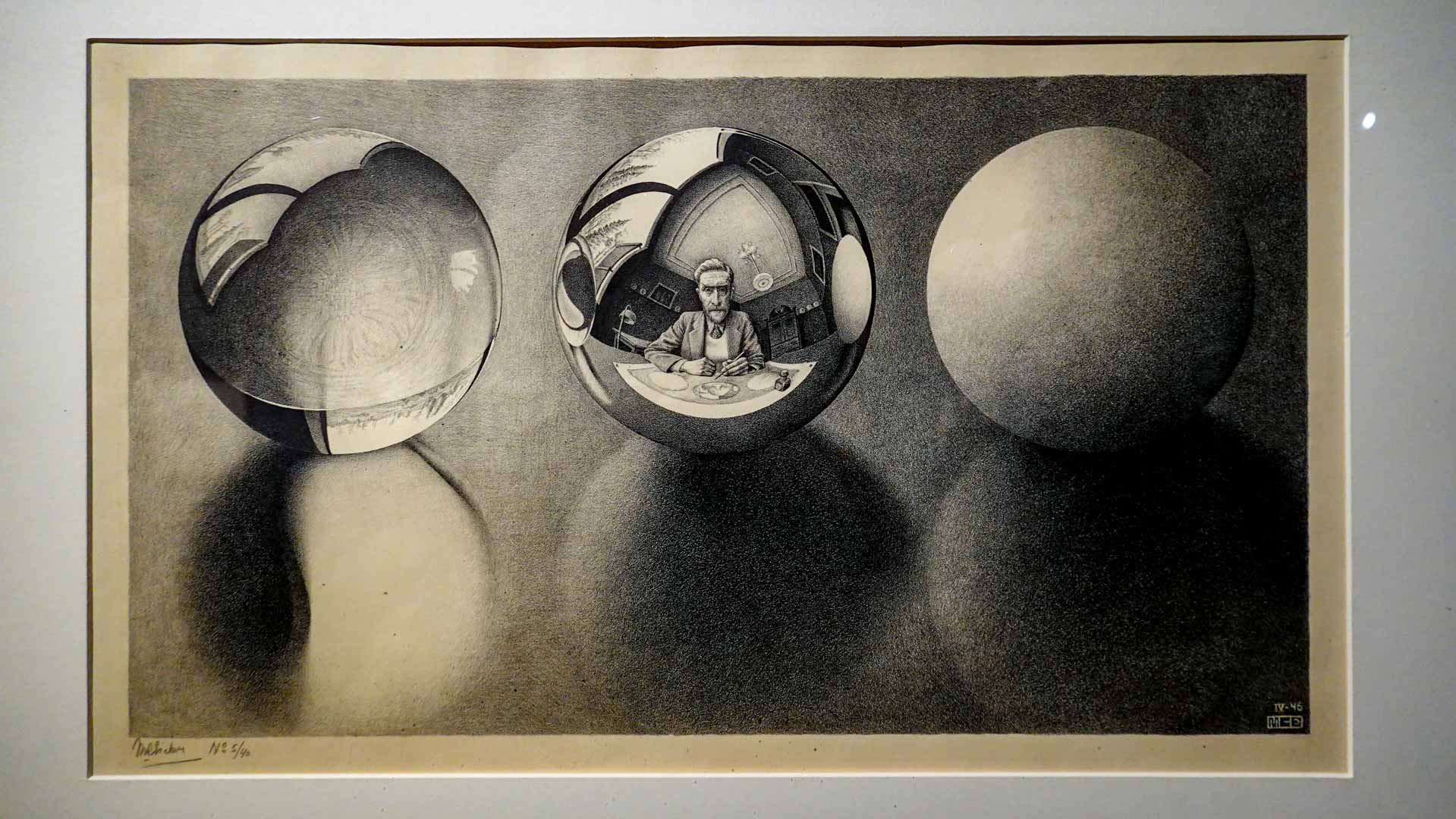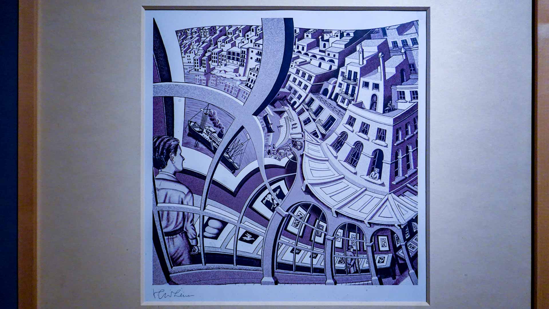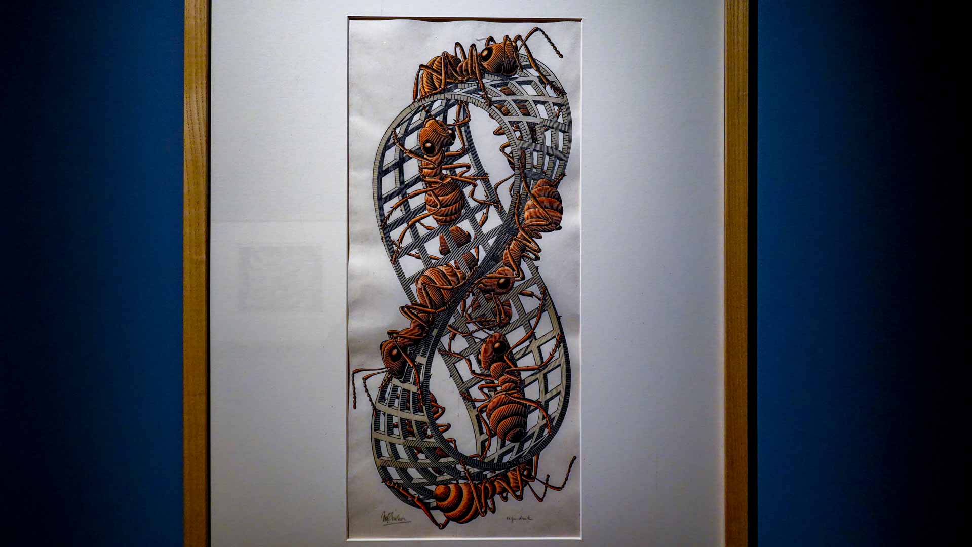 Son œuvre explore des mécanismes spatiaux et mathématiques complexes : perspective classique mais aussi perspective inversée, multiples points de fuite et perspectives impossibles comme dans Relativity, où les repères de gravité se contredisent. Il utilise les tessellations avec une rigueur quasi scientifique, transformant des motifs décoratifs hérités de l’art islamique en créatures qui se métamorphosent et s’emboîtent sans lacune, comme dans Ciel et Eau ou Reptiles. Les séries Circle Limit témoignent de son intérêt pour la géométrie hyperbolique, qu’il rend visible grâce à des transformations continues qui évoquent l’infini.