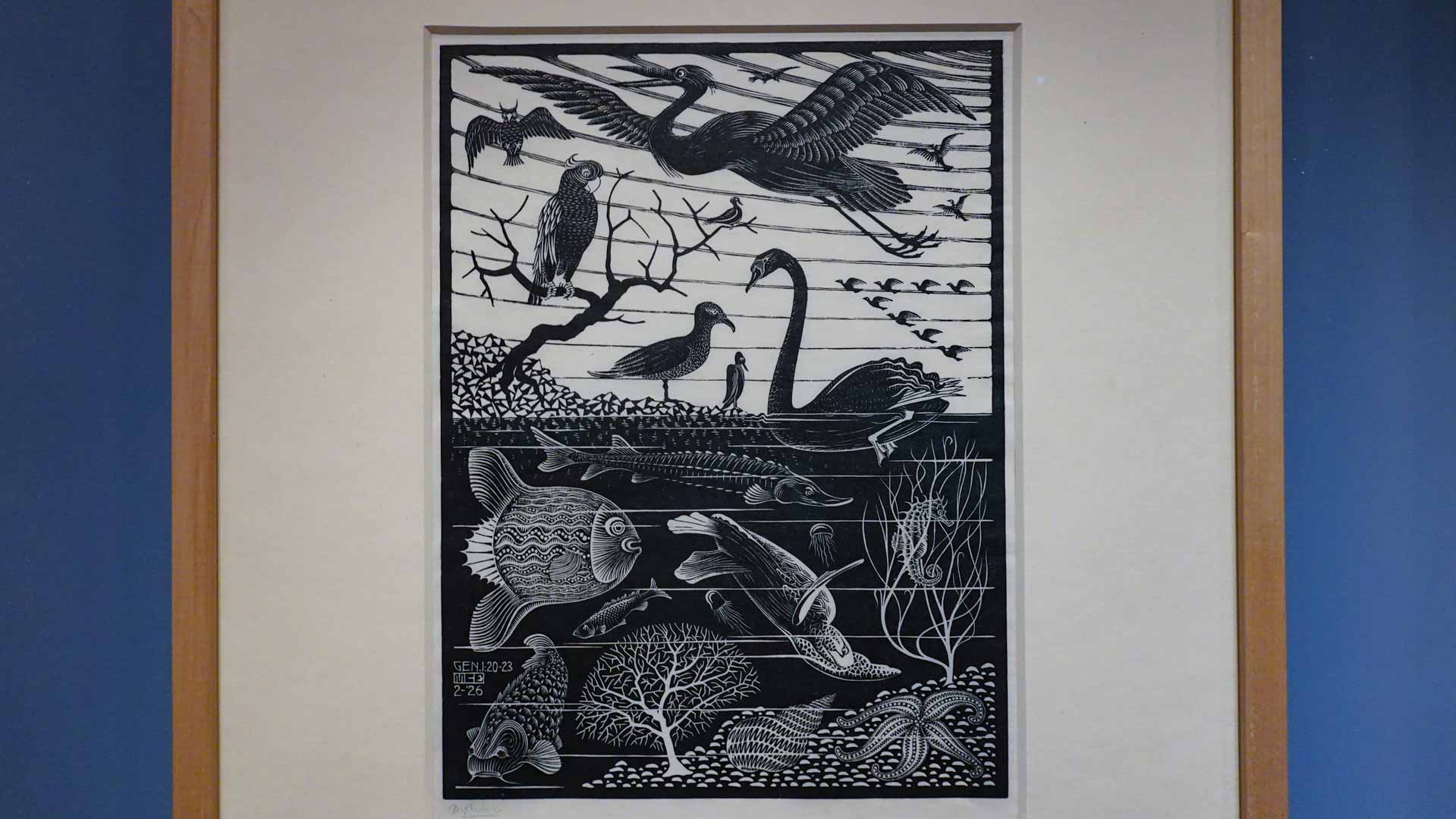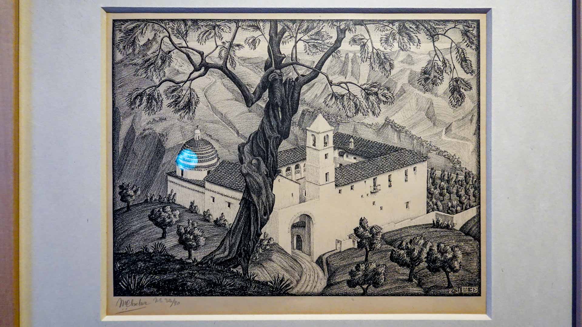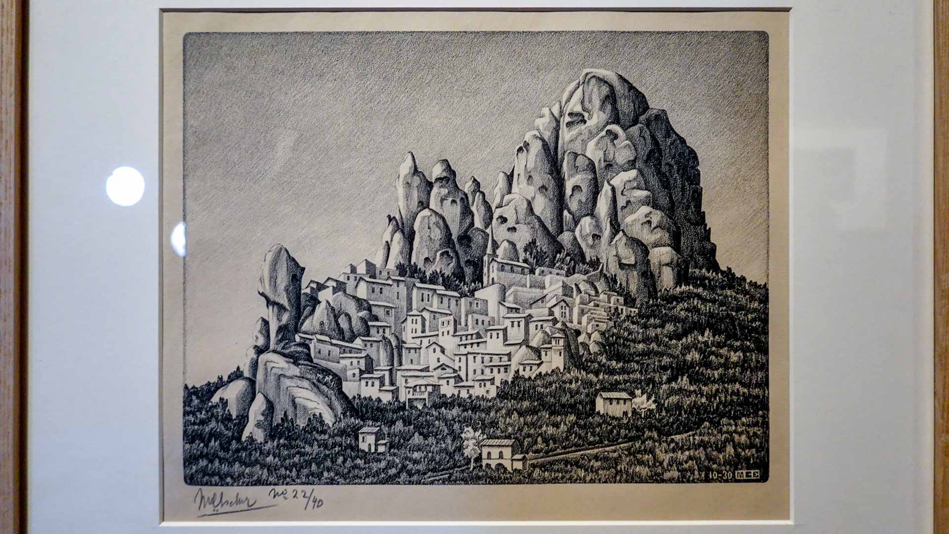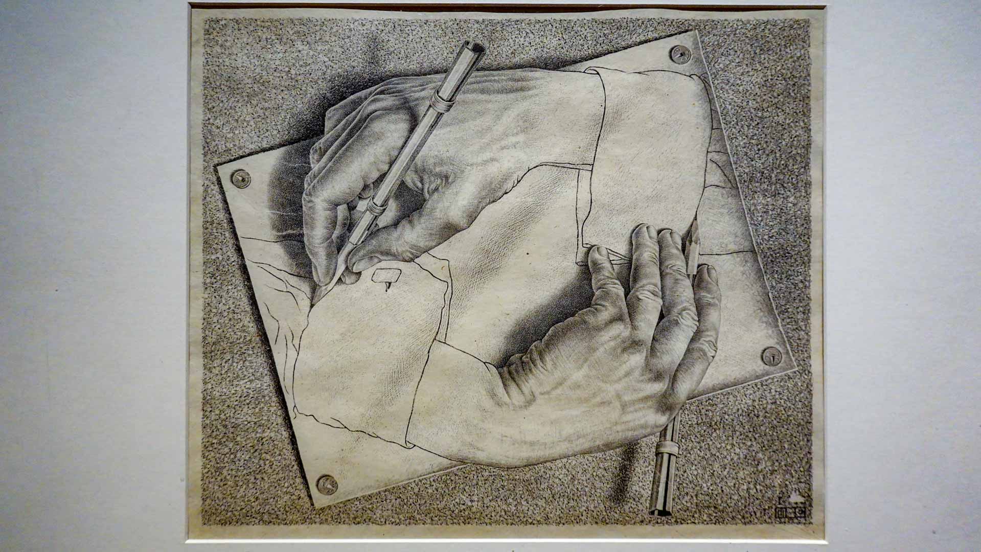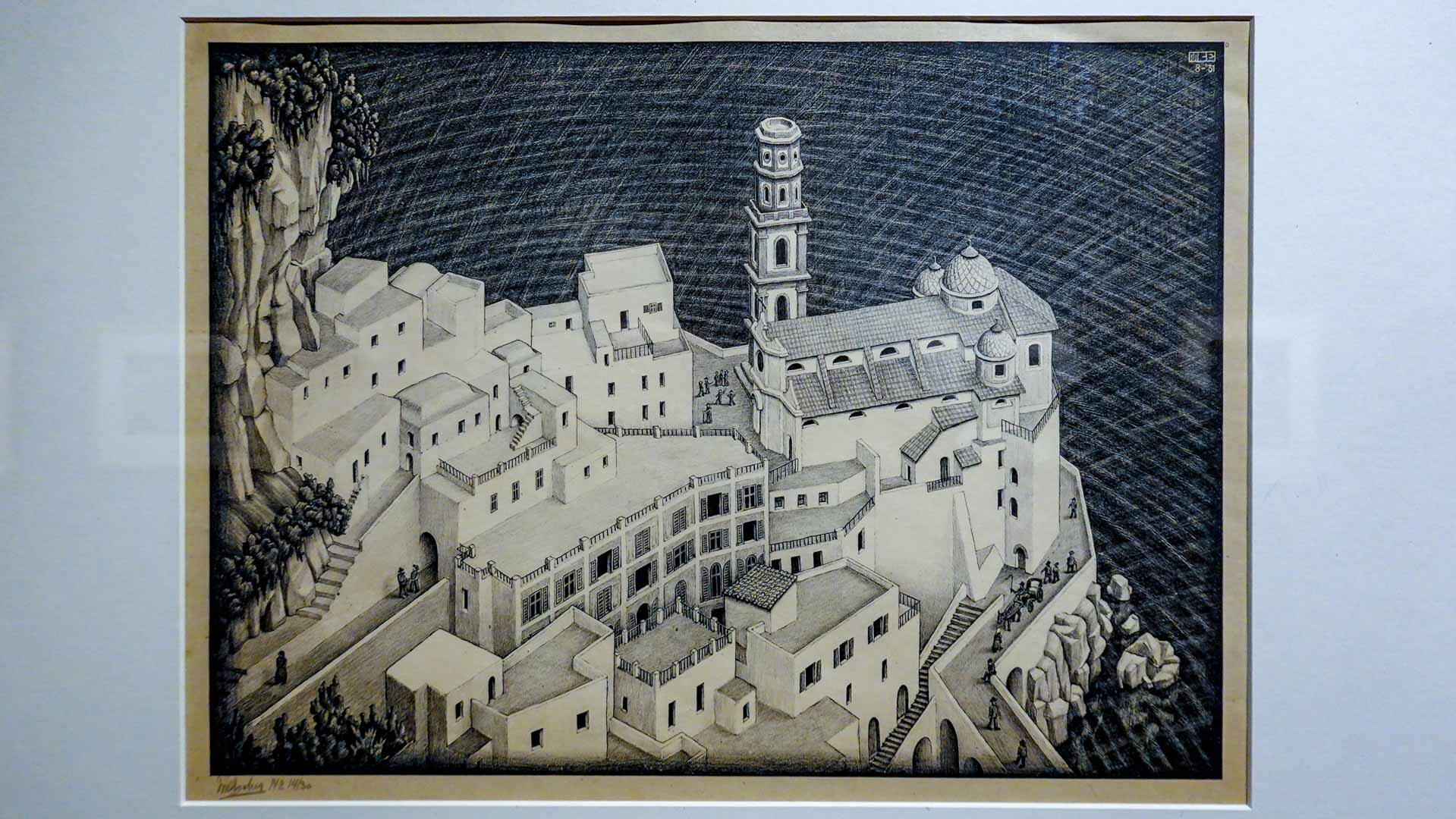 Son œuvre explore des mécanismes spatiaux et mathématiques complexes : perspective classique mais aussi perspective inversée, multiples points de fuite et perspectives impossibles comme dans Relativity, où les repères de gravité se contredisent. Il utilise les tessellations avec une rigueur quasi scientifique, transformant des motifs décoratifs hérités de l’art islamique en créatures qui se métamorphosent et s’emboîtent sans lacune, comme dans Ciel et Eau ou Reptiles. Les séries Circle Limit témoignent de son intérêt pour la géométrie hyperbolique, qu’il rend visible grâce à des transformations continues qui évoquent l’infini.