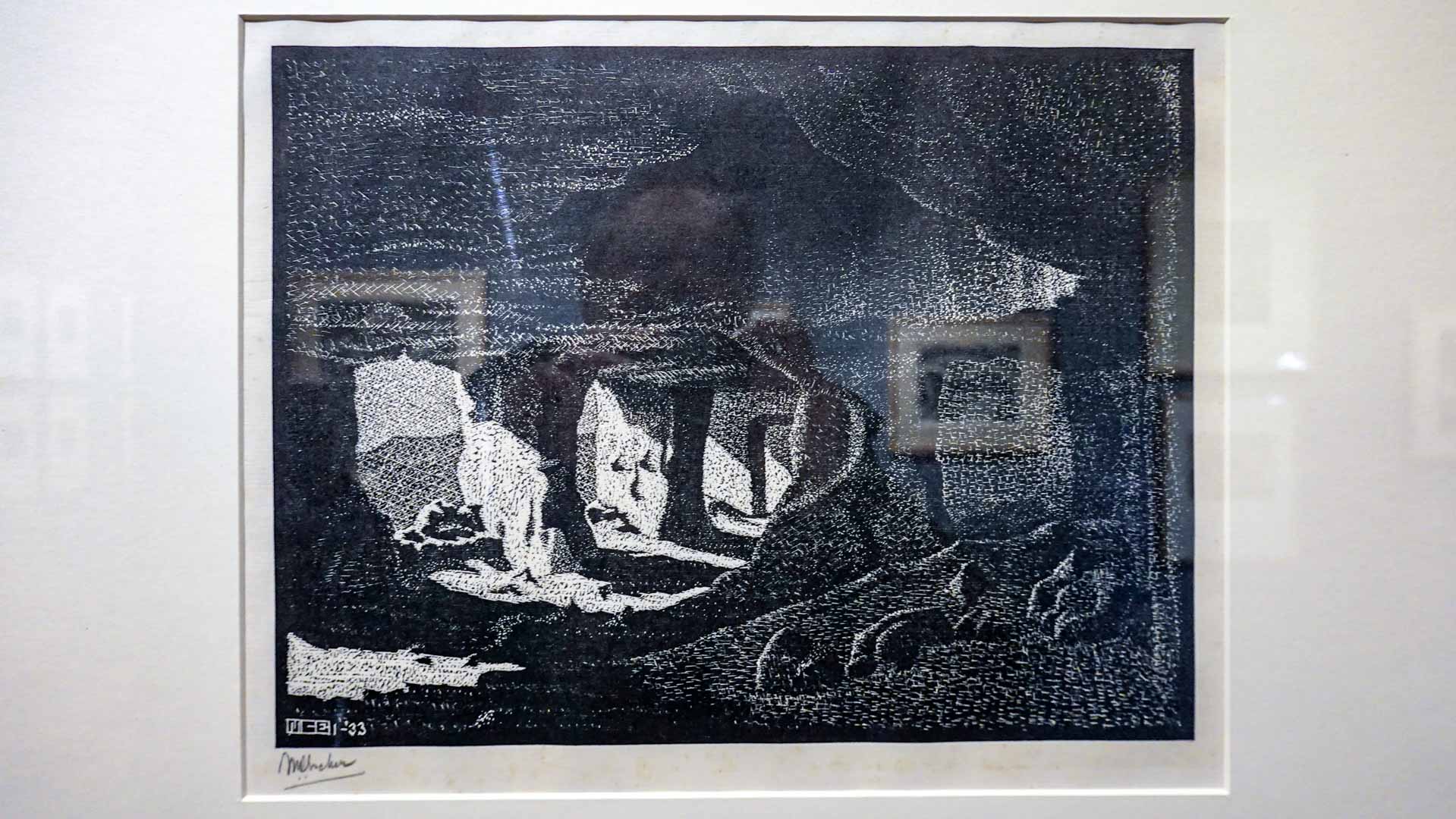 Techniquement, Escher maîtrise la xylographie (gravure sur bois aux contrastes précis), la lithographie (gravure sur pierre avec de délicats dégradés) et la mezzotinte (technique demandant un long travail d’ombre et de lumière). Son processus s’appuie sur des calculs, des schémas de symétrie et une exploration méthodique de l’espace visuel. Longtemps incompris des artistes, il est aujourd’hui reconnu comme une figure majeure reliant art, géométrie, perception et héritages décoratifs d’Al-Andalus — un créateur pour qui l’image devient un véritable laboratoire scientifique.