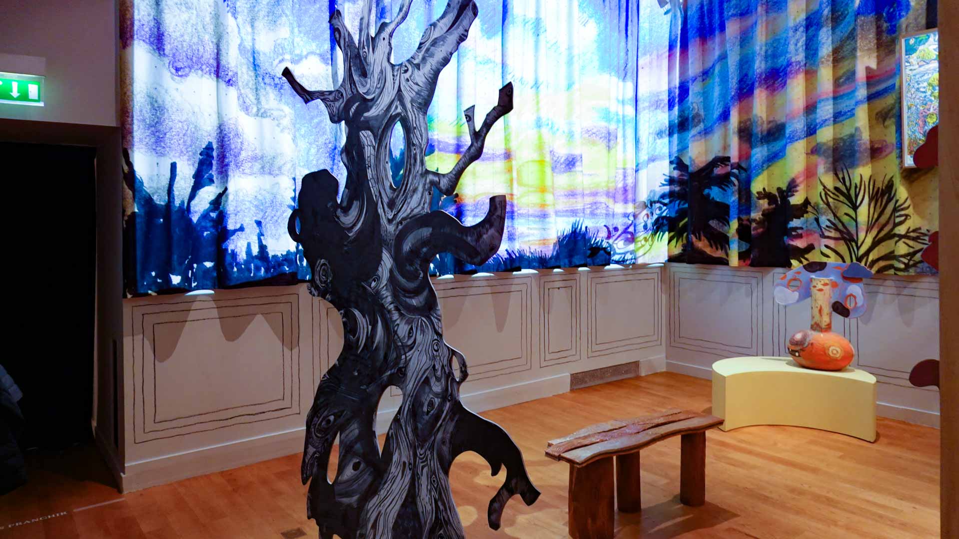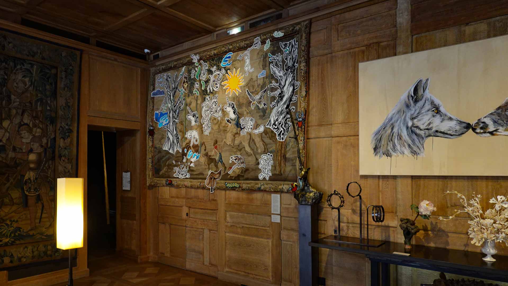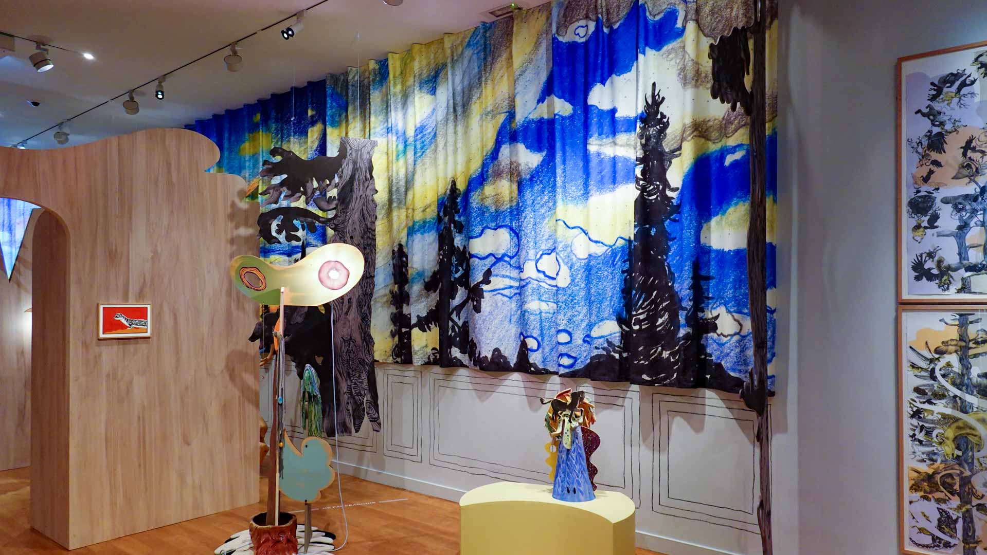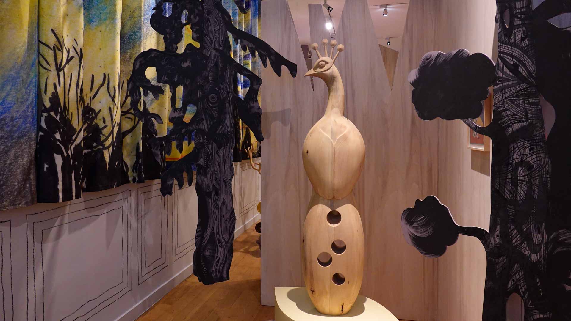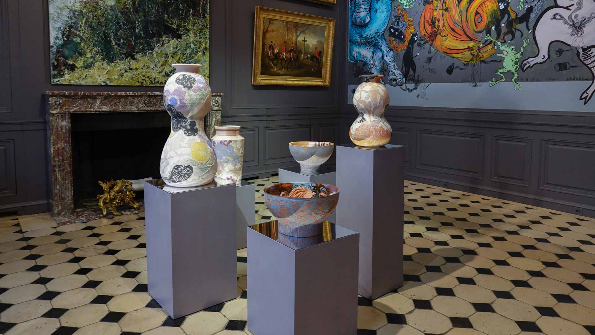 Les artistes investissent les salles du musée en y disposant céramiques, dessins, textiles, paravents et objets décoratifs qui forment un habitat imaginaire, à mi-chemin entre maison et forêt, comme si le bestiaire du musée s’animait sous une lumière nouvelle. Cette mise en scène immersive brouille volontairement les frontières entre art et artisanat, décor et installation, rappelant l’importance du geste, des motifs et des savoir-faire dans leur démarche.