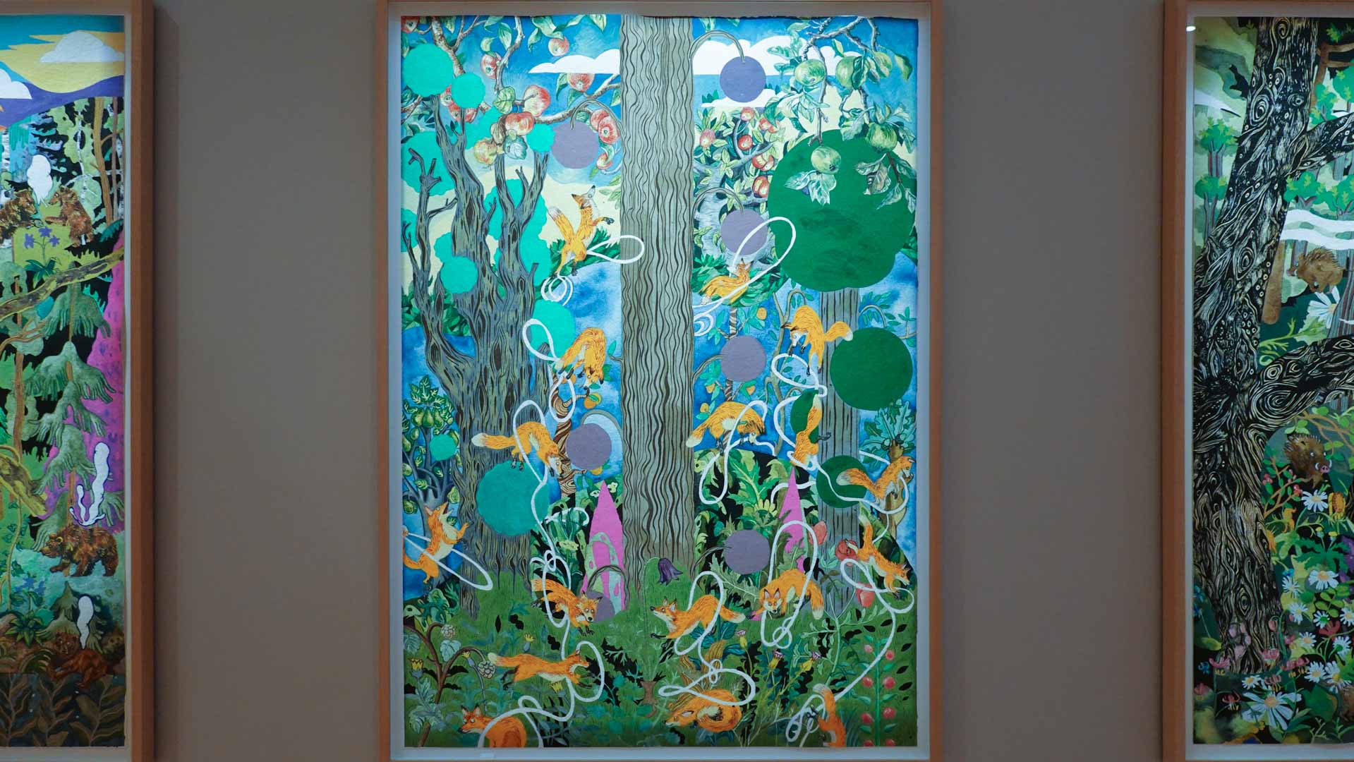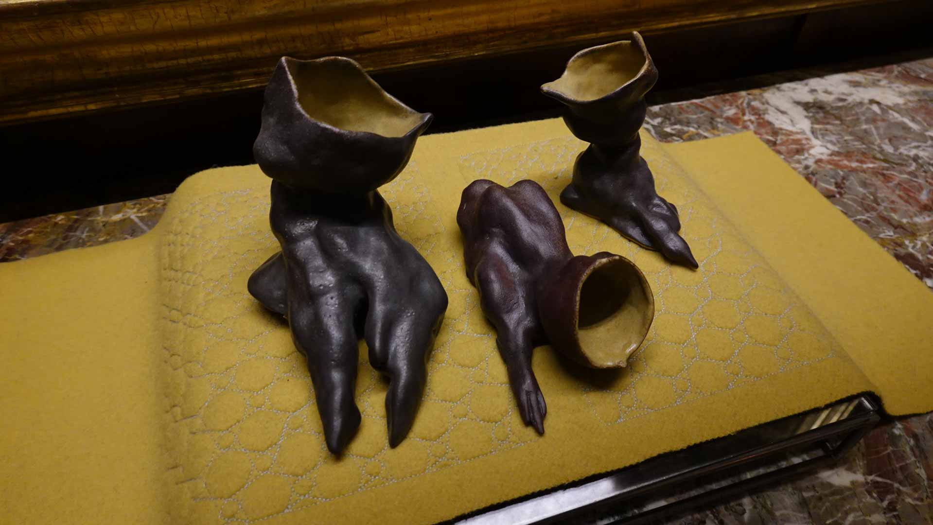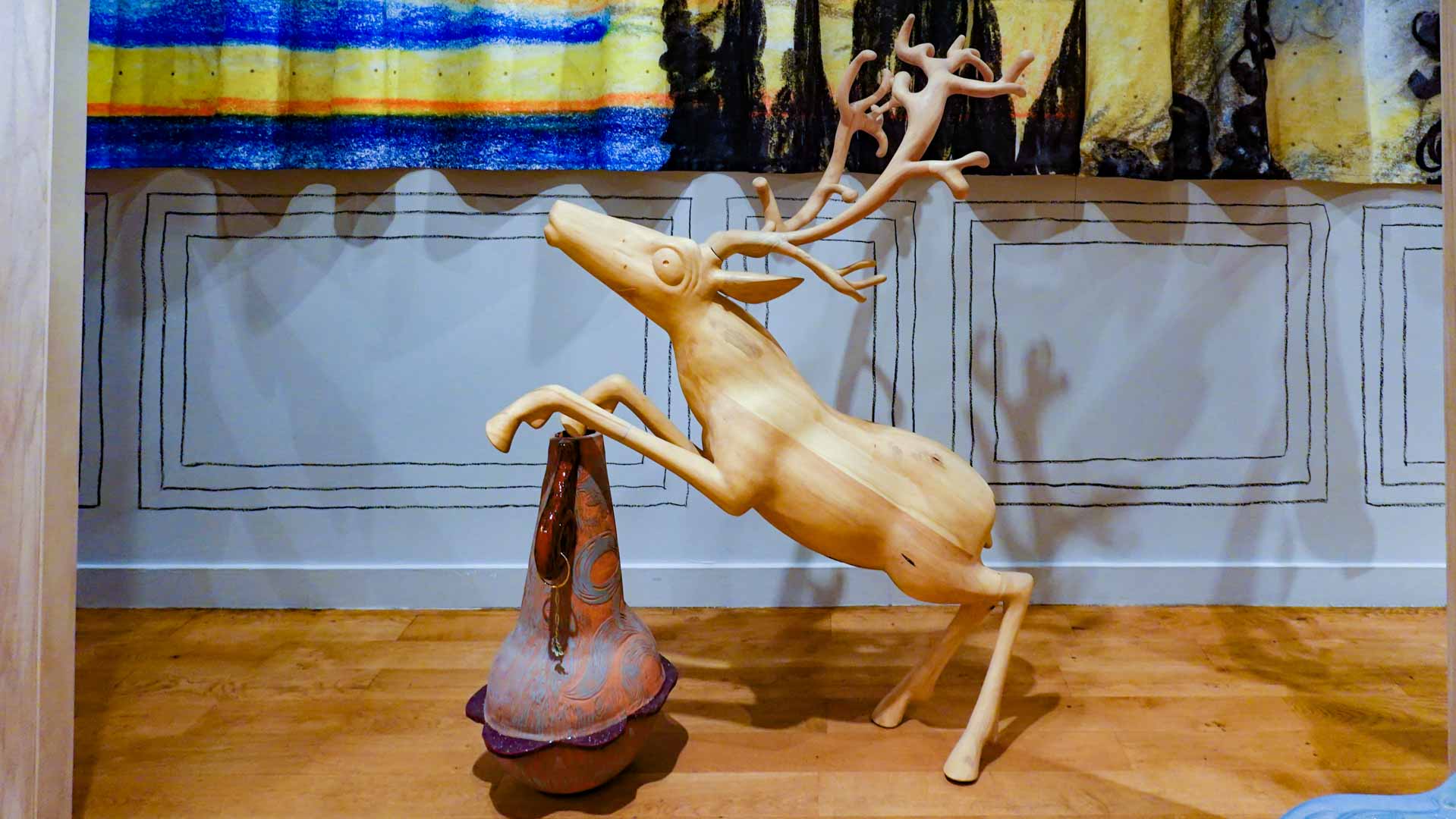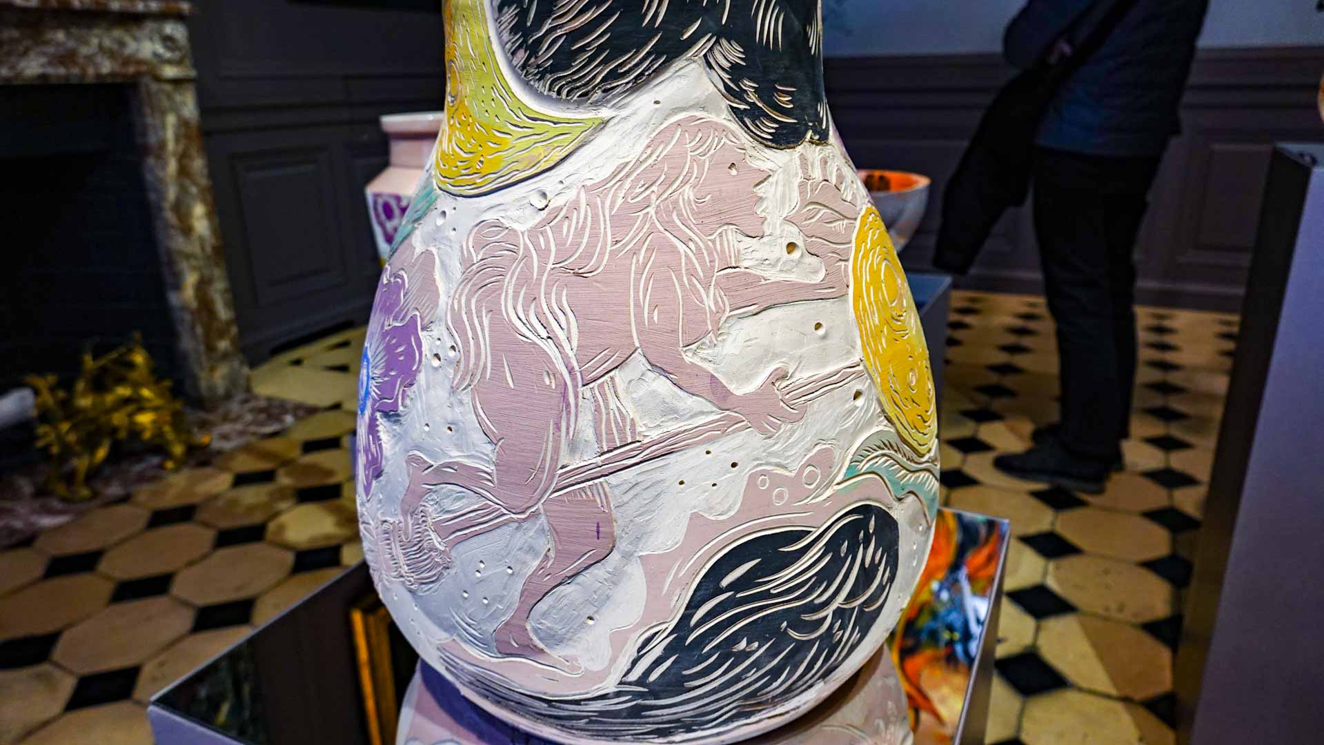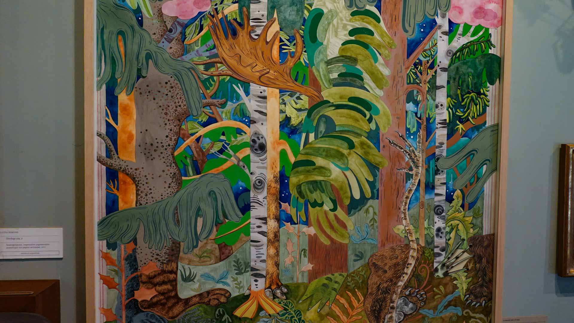 Les artistes investissent les salles du musée en y disposant céramiques, dessins, textiles, paravents et objets décoratifs qui forment un habitat imaginaire, à mi-chemin entre maison et forêt, comme si le bestiaire du musée s’animait sous une lumière nouvelle. Cette mise en scène immersive brouille volontairement les frontières entre art et artisanat, décor et installation, rappelant l’importance du geste, des motifs et des savoir-faire dans leur démarche.