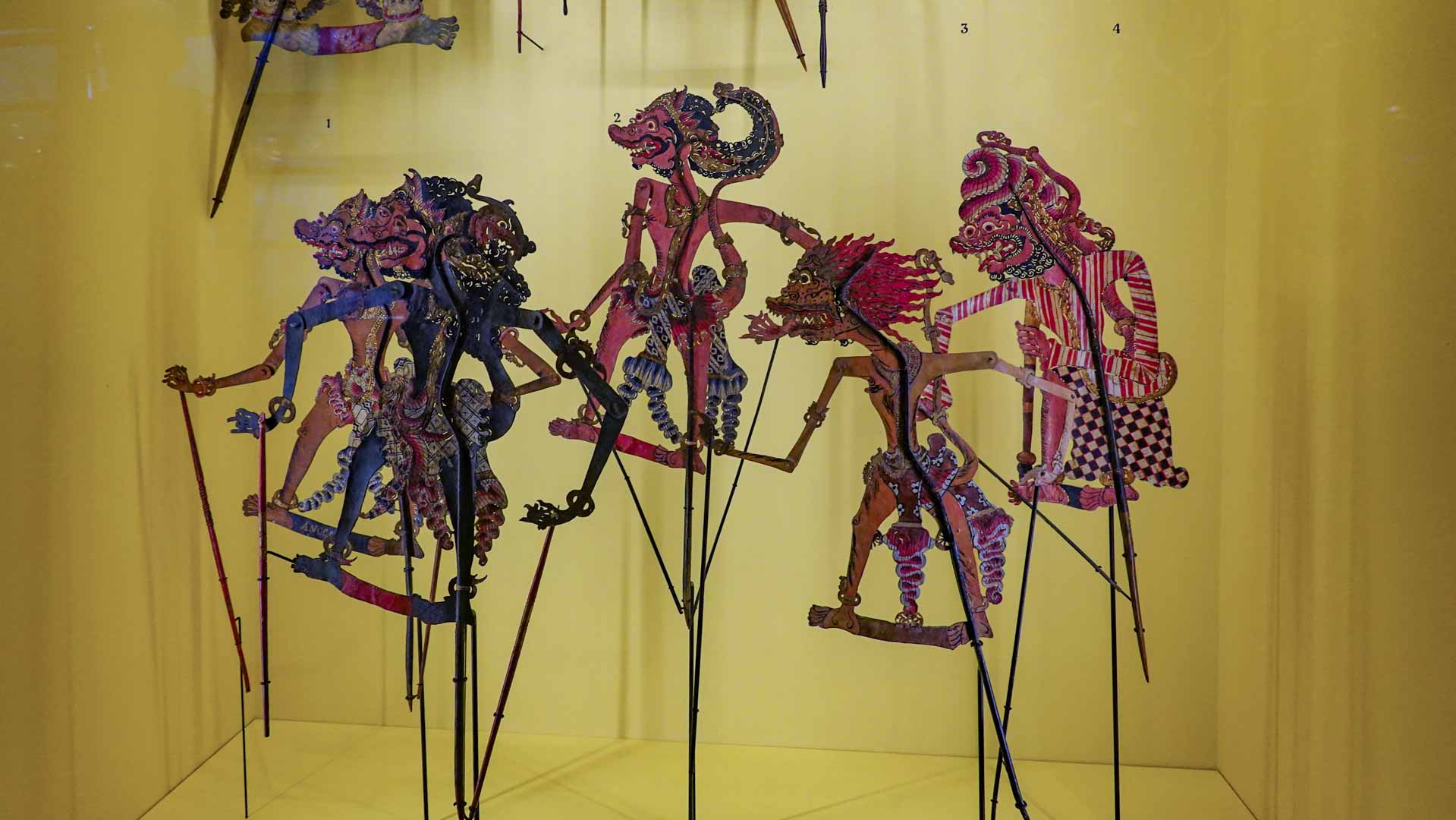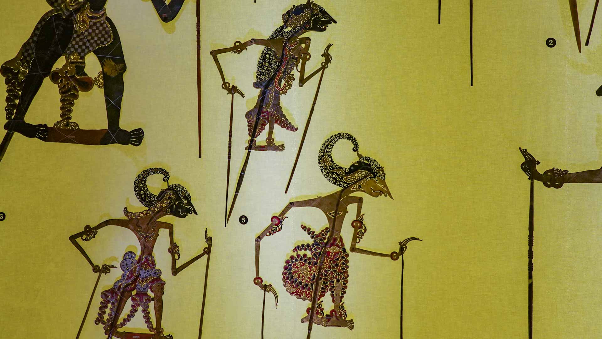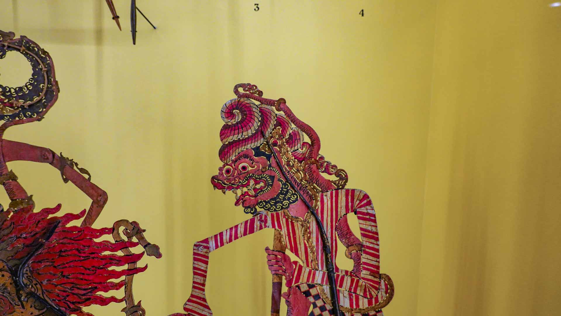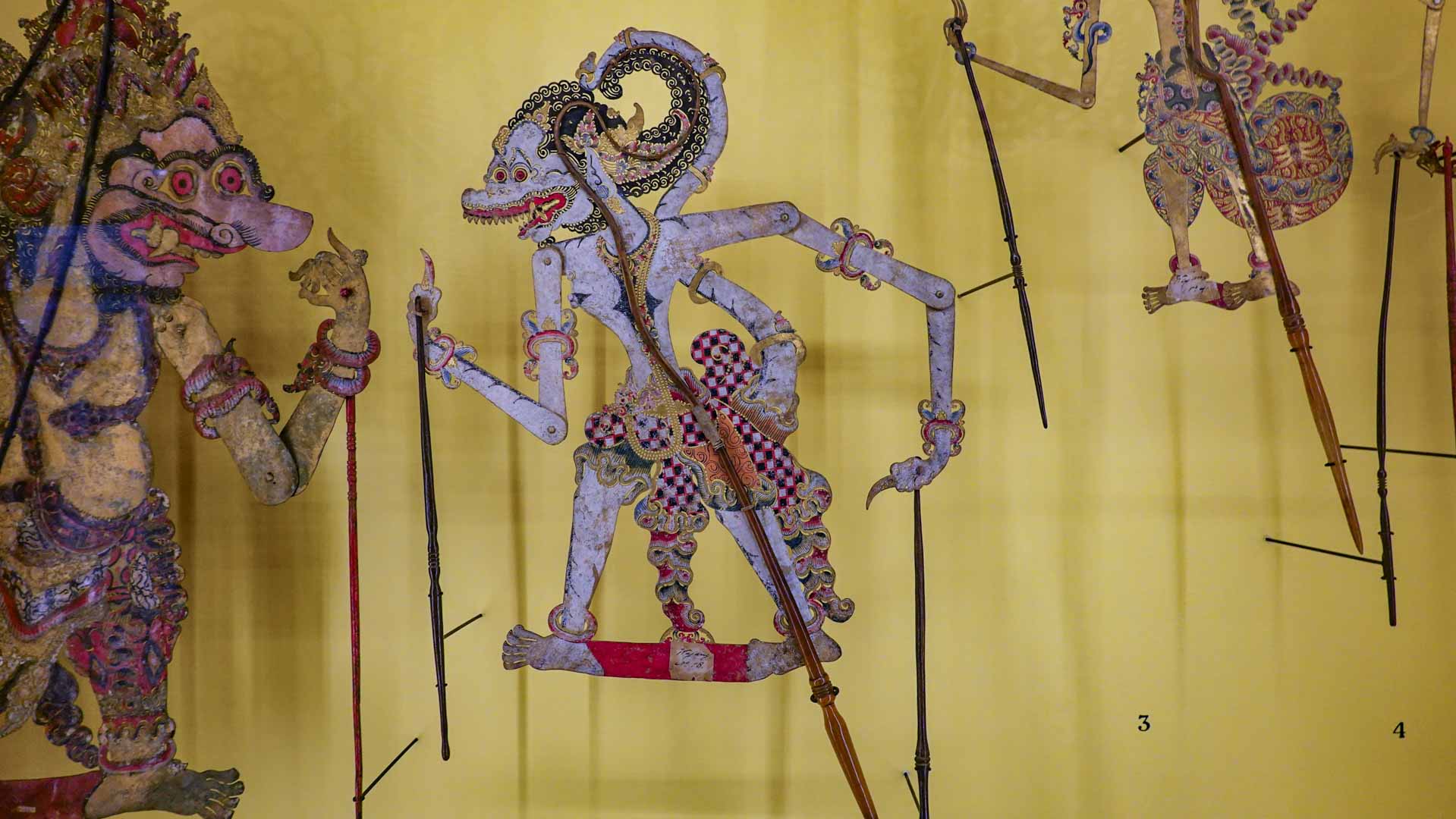 Les marionnettes, appelées wayang, sont fabriquées en cuir de buffle (kulit) minutieusement ciselé et perforé. Des tiges en corne de buffle permettent leur manipulation. Chaque marionnette représente un personnage type : les raffinés (halus), aux traits fins et nobles ; les rudes (kasar), figurant démons et guerriers ; et les bouffons (punakawan), serviteurs apportant humour et sagesse populaire.