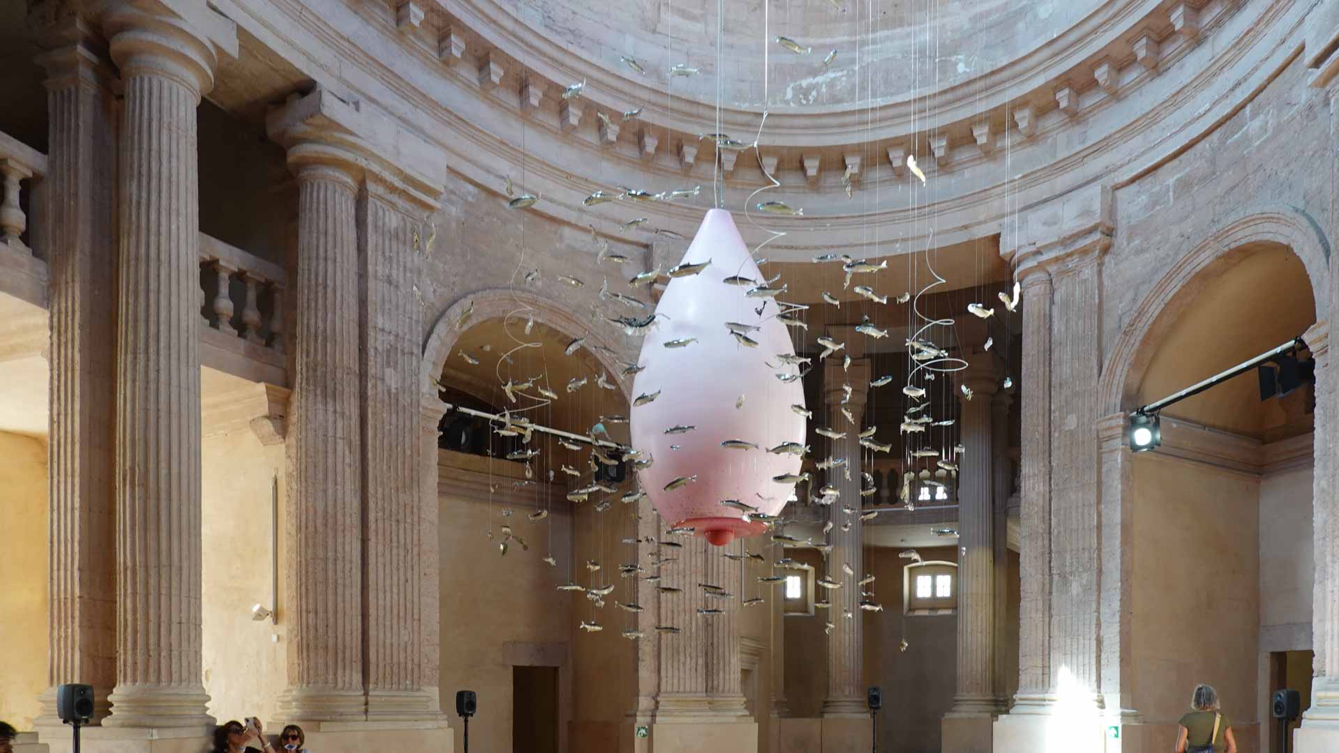"L’installation Mère We Sea est le fruit d’un véritable travail de collaboration. Les personnes jeunes et moins jeunes ayant vécu à la Charité, les enfants dont les voix flottent dans l’espace de la chapelle, sont devenus acteurs et actrices de cet événement. La critique d’art américaine Claire Bishop définit l’art de la participation comme un art qui implique l’investissement de personnes, qui collectivement apparaissent comme le médium artistique central. Cet art, qui est celui de Laure Prouvost, construit un archipel de formes d’être ensemble, de commun, transformées en puissance d’agir. Il vise une modification des relations entre l’objet d’art, l’artiste, le public et le contexte. La participation construit ici une communauté faite de subjectivités multiples et se pose alors comme une activité autant symbolique, philosophique que politique."