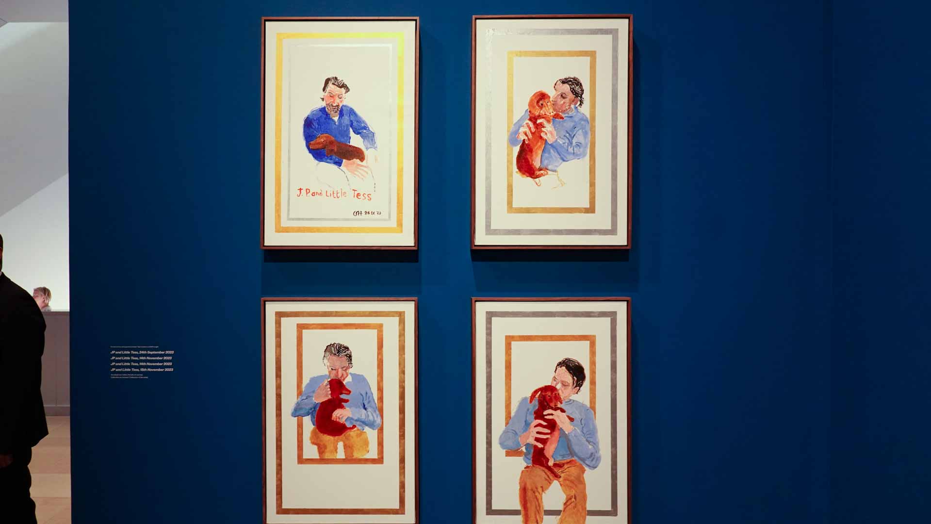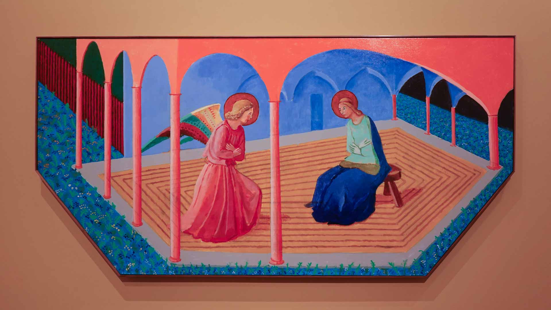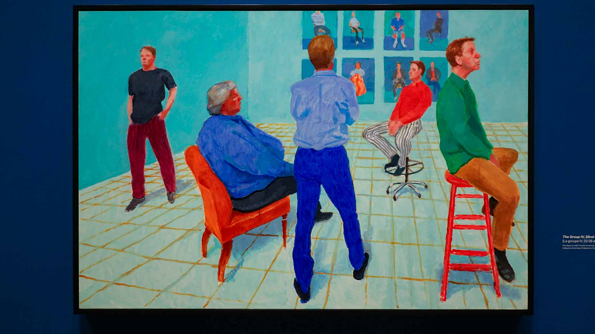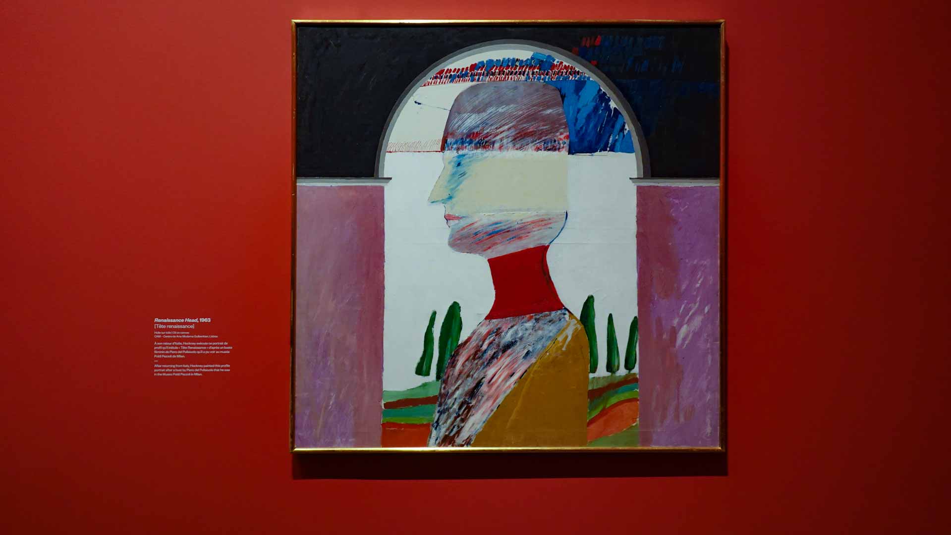 L'exposition débute avec des œuvres de jeunesse, telles que le portrait de son père réalisé en 1955, et des toiles emblématiques des années 1960 abordant l'homosexualité, comme We Two Boys Together Clinging (1961) et Two Men in a Shower (1963). Elle met également en lumière ses célèbres scènes californiennes, notamment A Bigger Splash (1967) et Portrait of an Artist (Pool with Two Figures) (1972), capturant l'esthétique ensoleillée de Los Angeles.