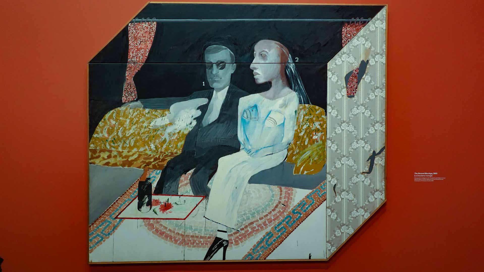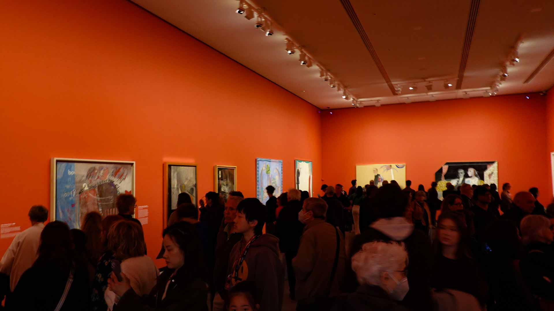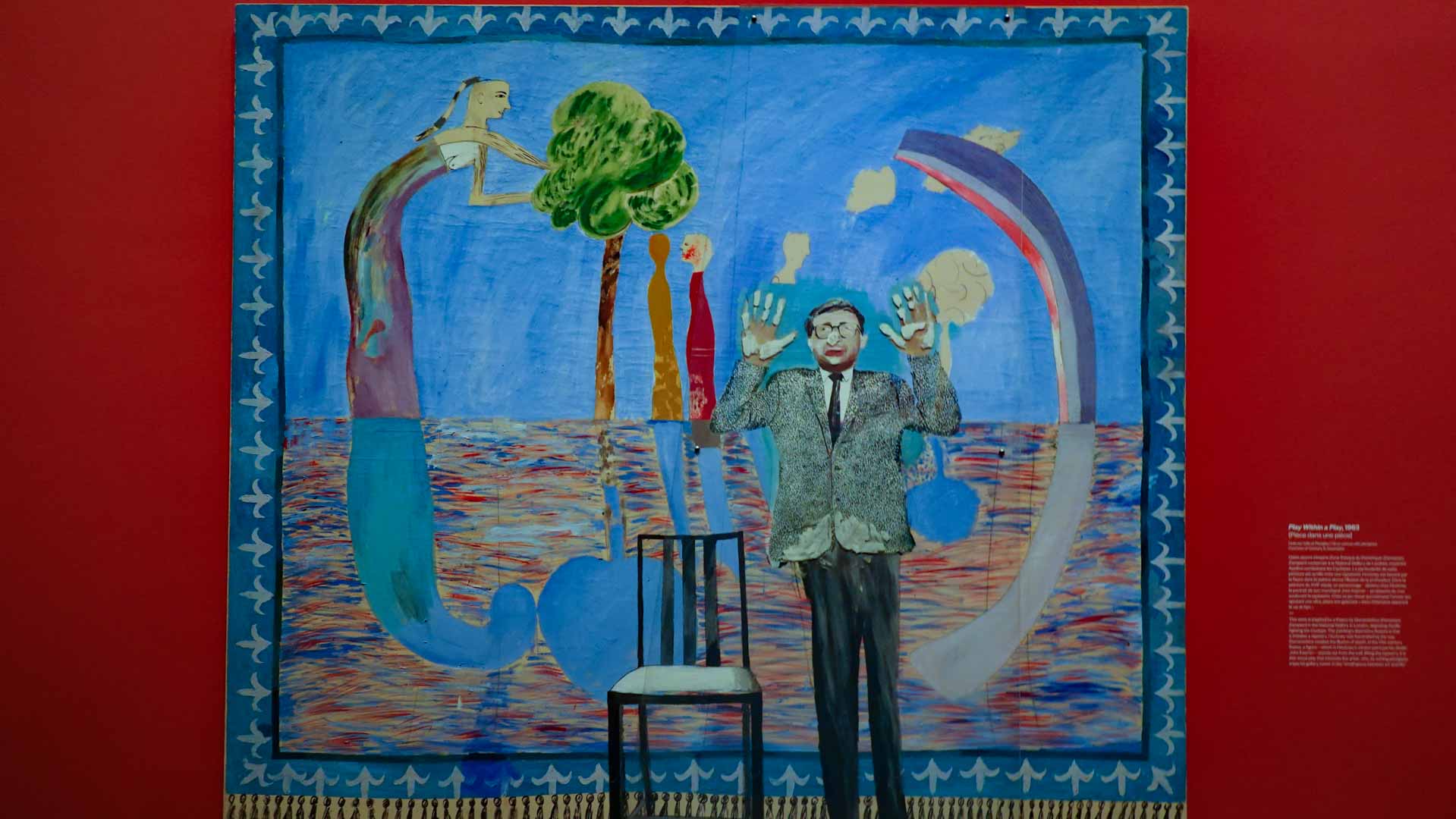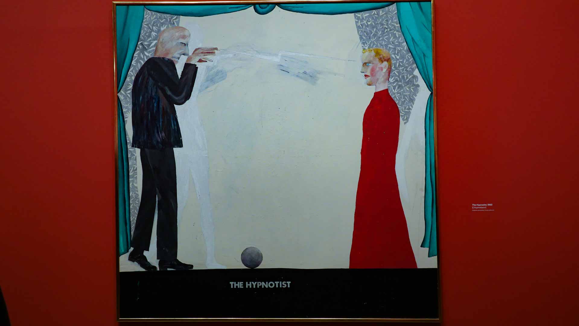 L'exposition débute avec des œuvres de jeunesse, telles que le portrait de son père réalisé en 1955, et des toiles emblématiques des années 1960 abordant l'homosexualité, comme We Two Boys Together Clinging (1961) et Two Men in a Shower (1963). Elle met également en lumière ses célèbres scènes californiennes, notamment A Bigger Splash (1967) et Portrait of an Artist (Pool with Two Figures) (1972), capturant l'esthétique ensoleillée de Los Angeles.
