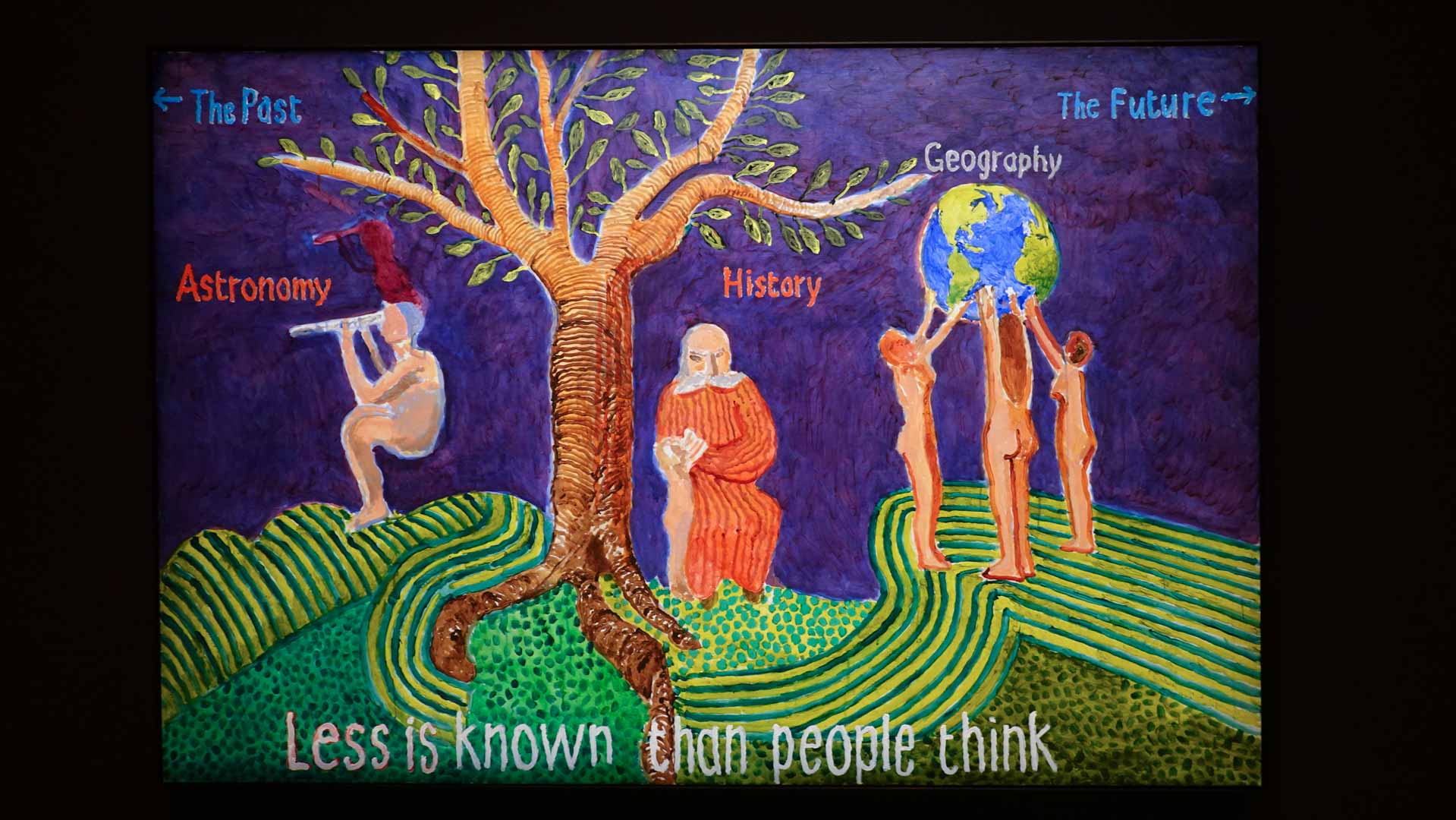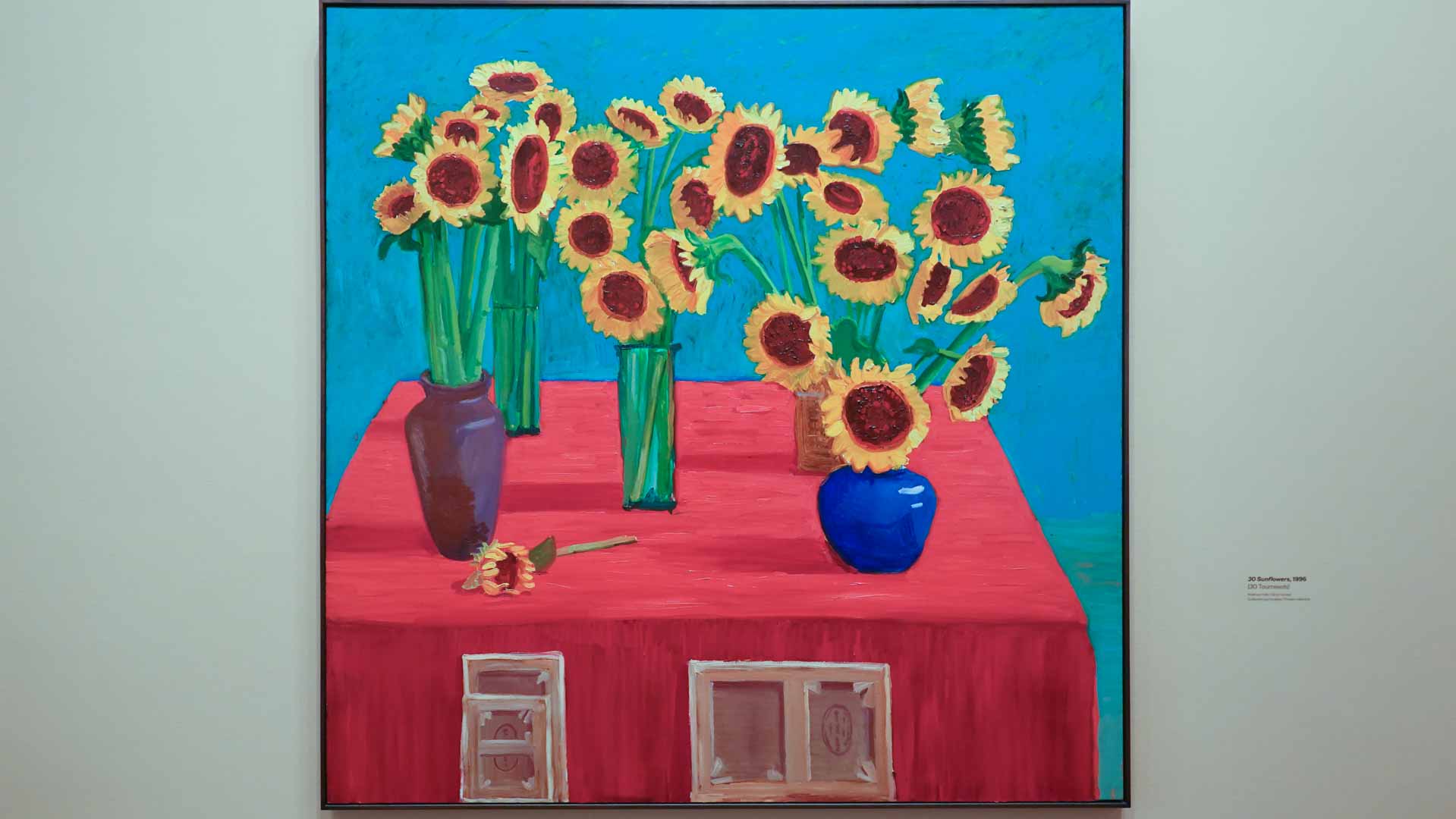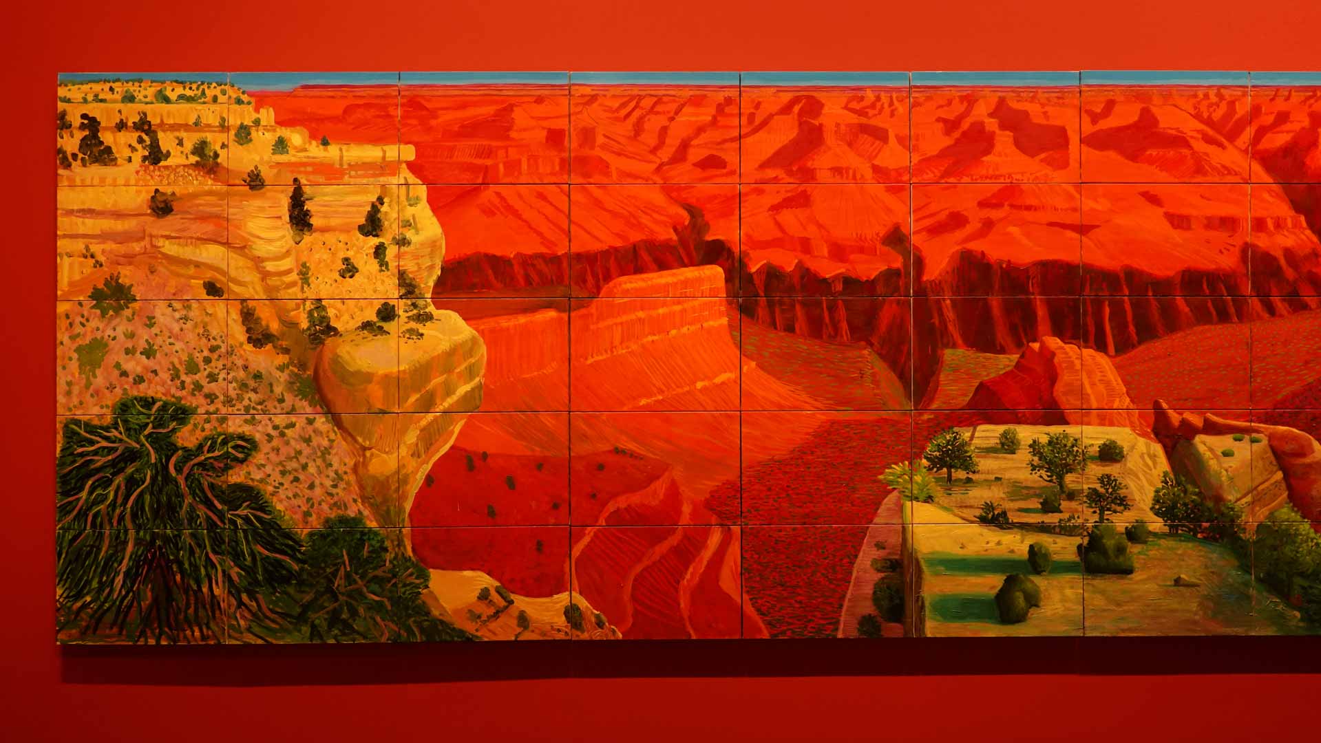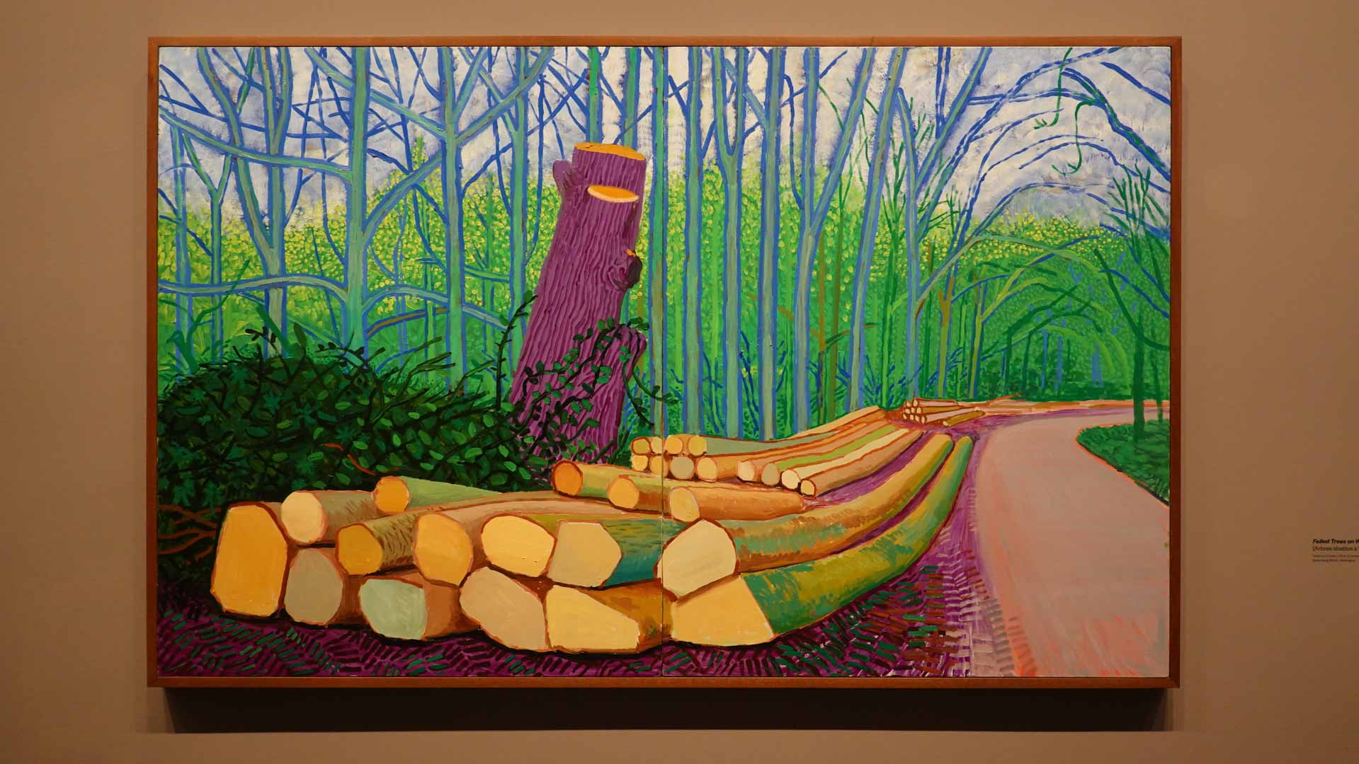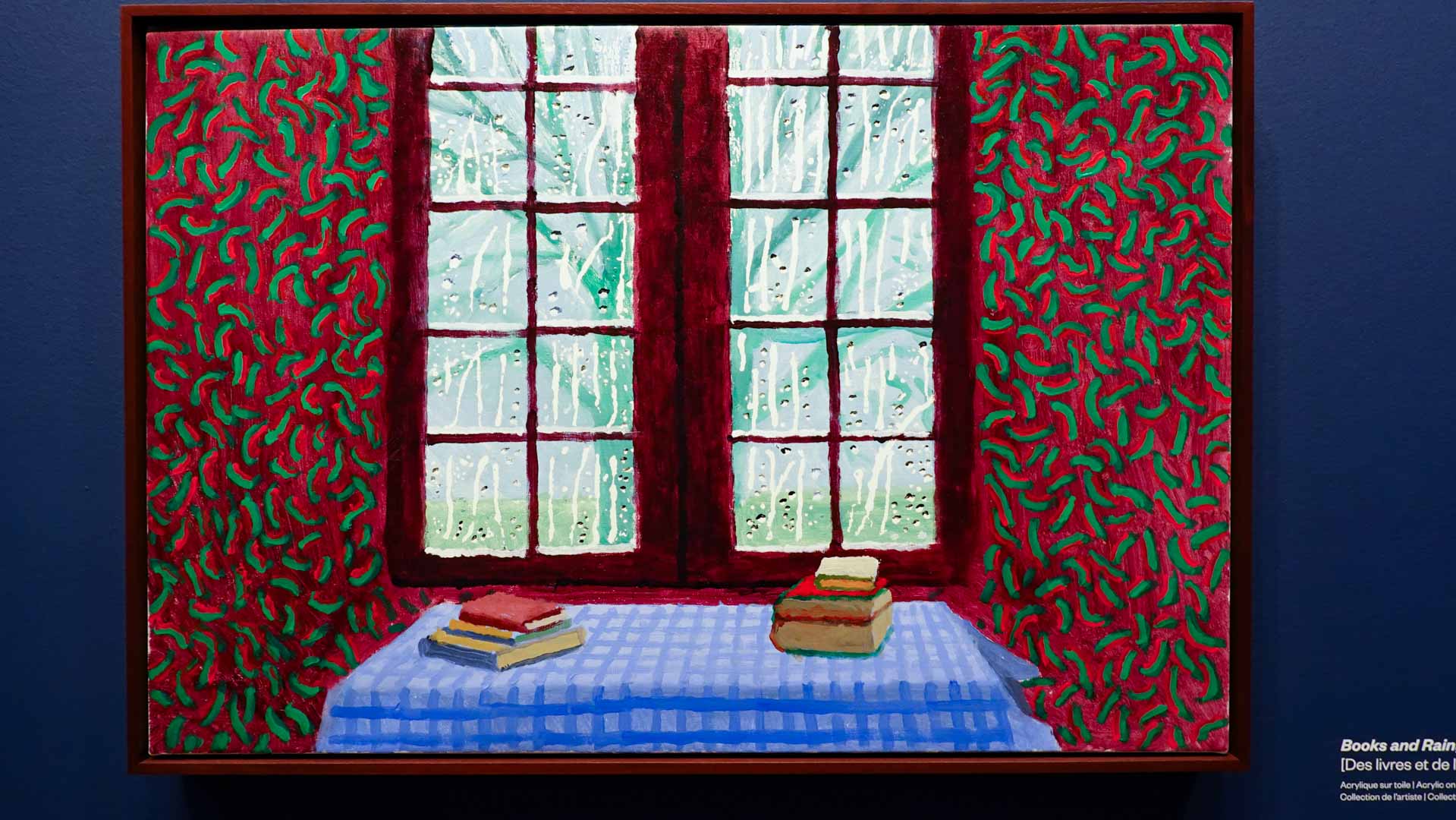 La rétrospective accorde une attention particulière aux œuvres des 25 dernières années, période marquée par une exploration intense du paysage et de la technologie. Parmi les pièces majeures, on retrouve Bigger Trees Near Warter (2007), une composition monumentale de 50 toiles représentant la campagne du Yorkshire, et A Year in Normandie (2020), une frise numérique de 90 mètres inspirée de la tapisserie de Bayeux. Durant le confinement, Hockney a également réalisé plus de 200 dessins sur iPad, capturant la floraison printanière de son jardin normand.
