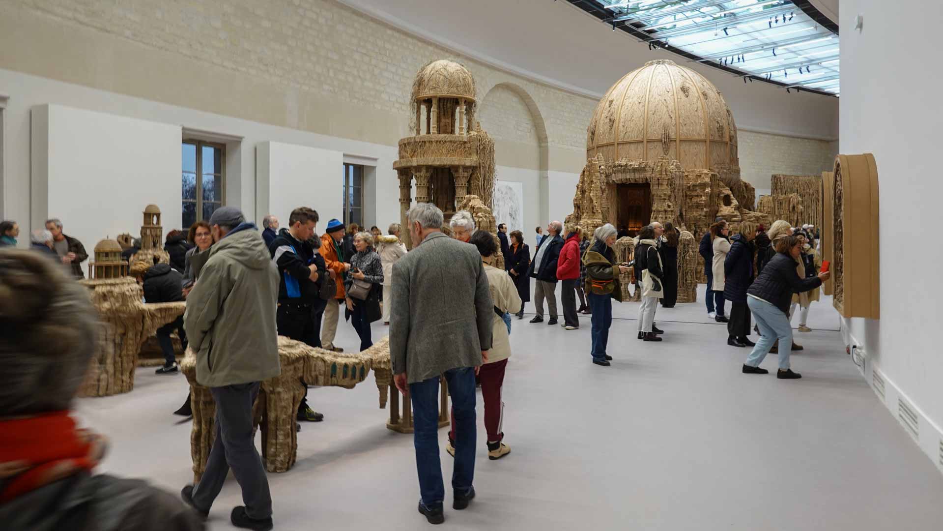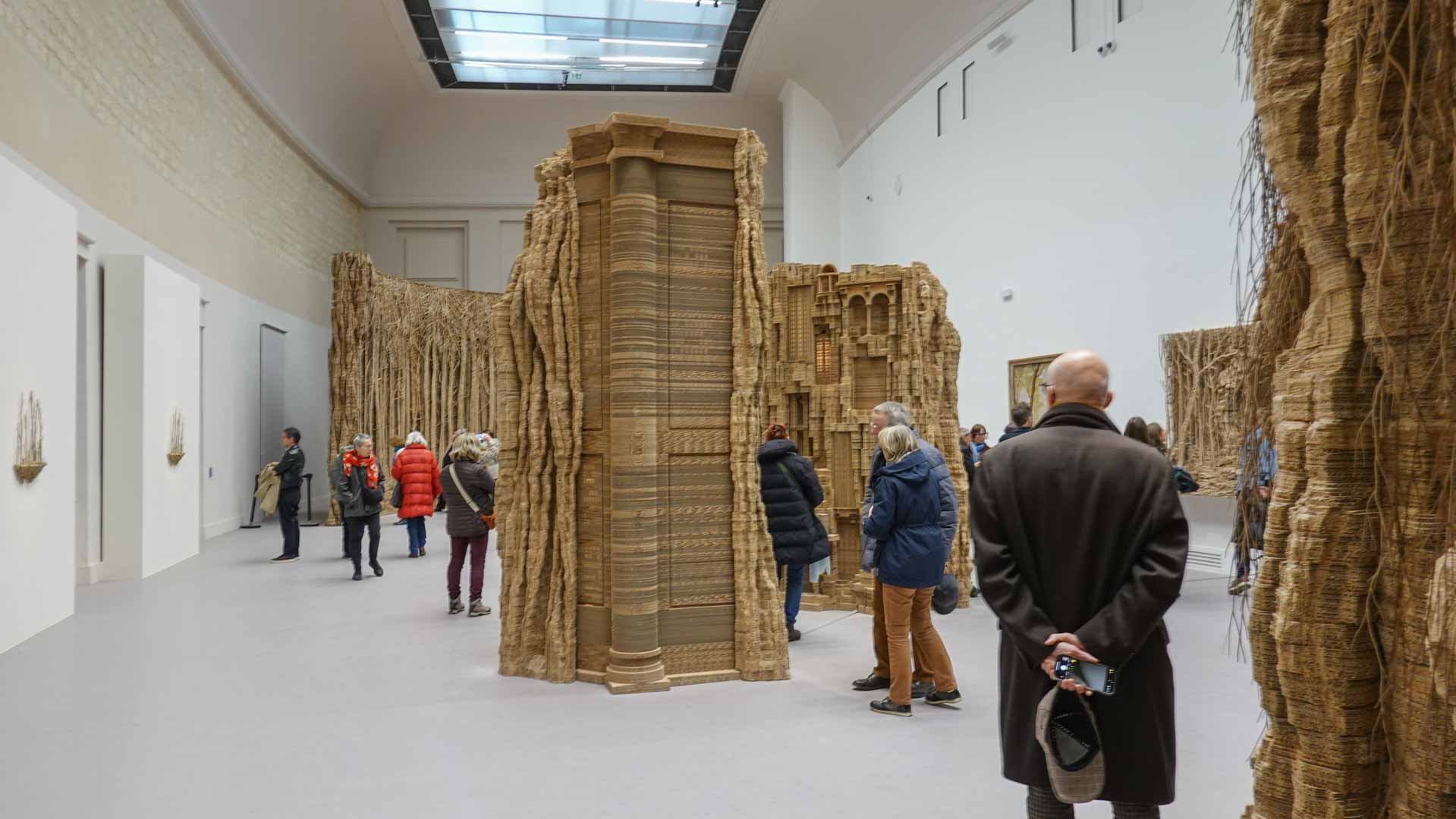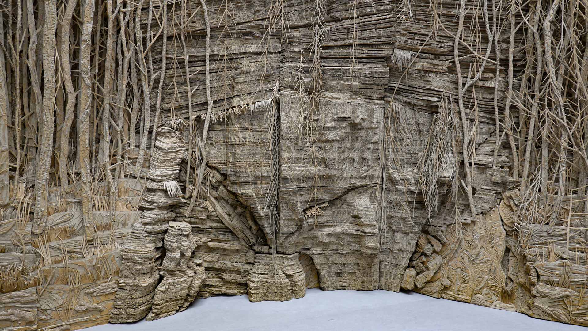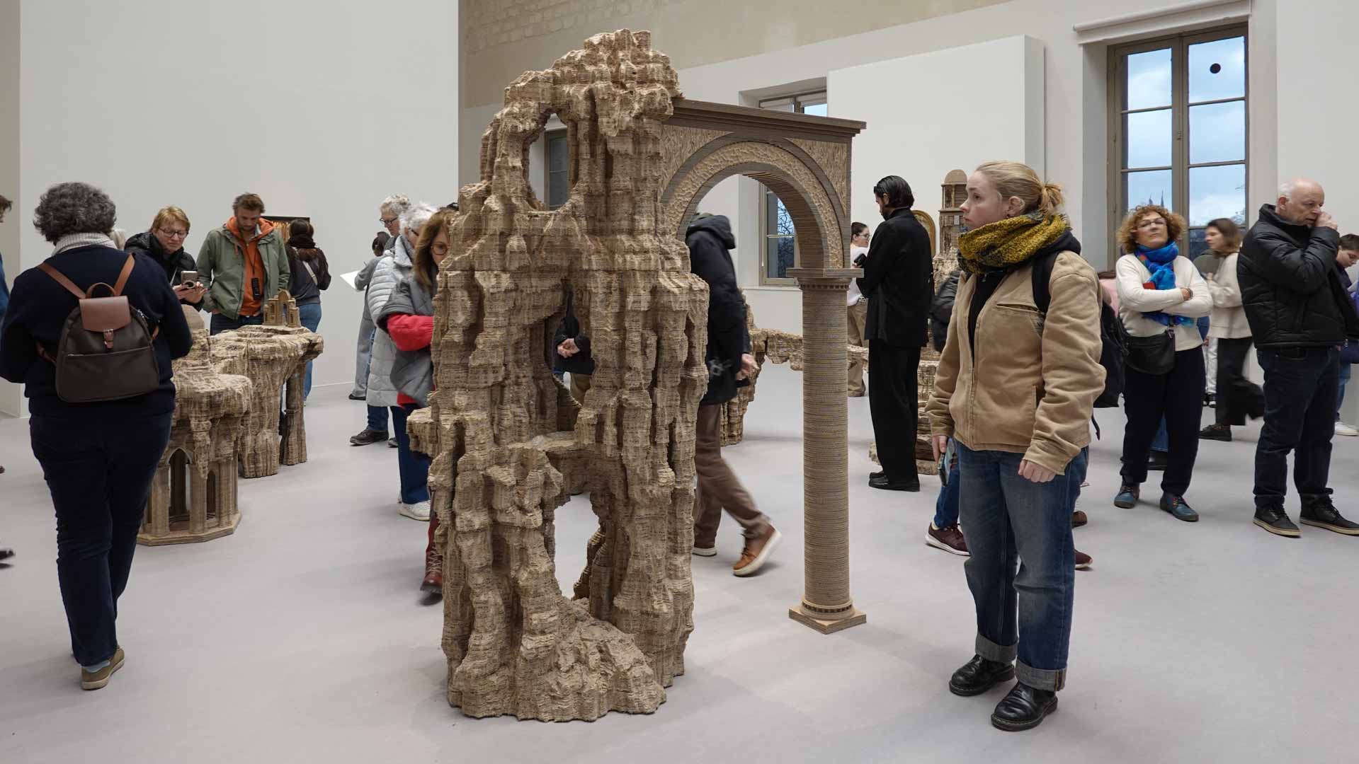 Le titre de l'exposition, Grottesco, renvoie à une légende : celle d'un jeune Romain, tombé par hasard dans une cavité oubliée où, sous terre, il découvre de magnifiques fresques. Ce n'est qu'ultérieurement que l'on reconnaîtra en ces vestiges la Domus Aurea de Néron, ensevelie depuis des siècles. À partir de ce palais qui semblait être une grotte naît le « grotesque » — un style où le végétal, l'architectural, le fantastique s'enlacent dans un imaginaire foisonnant.