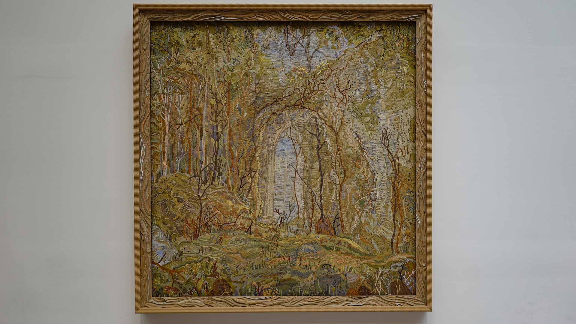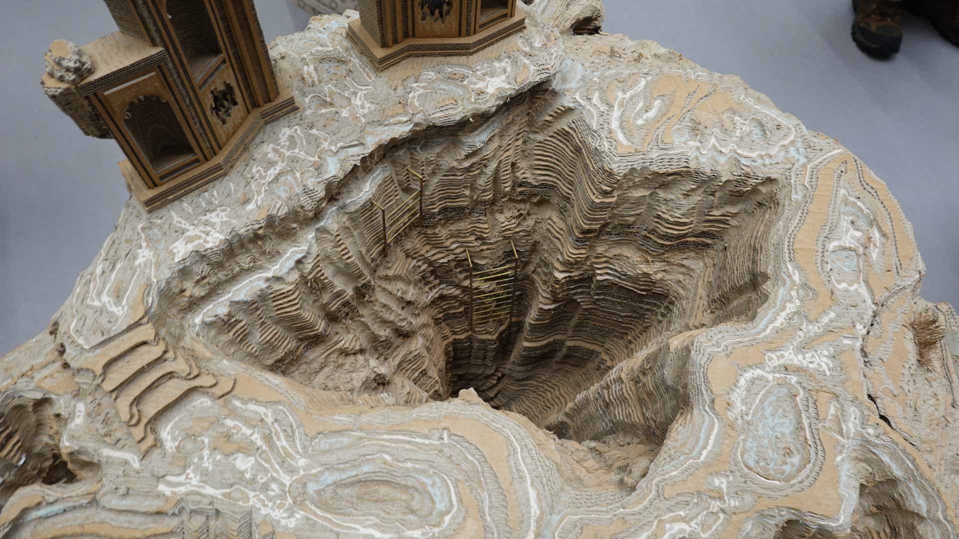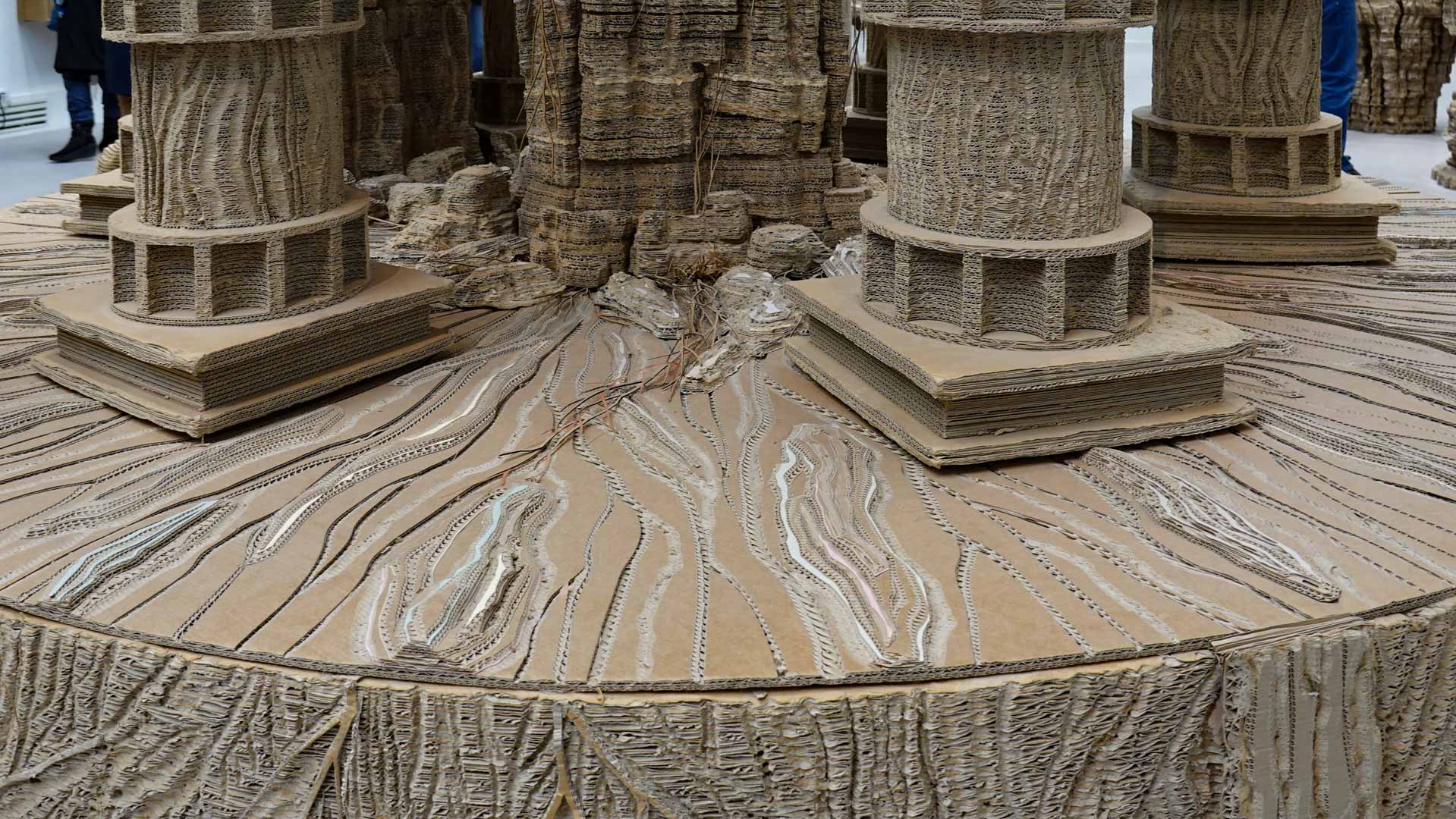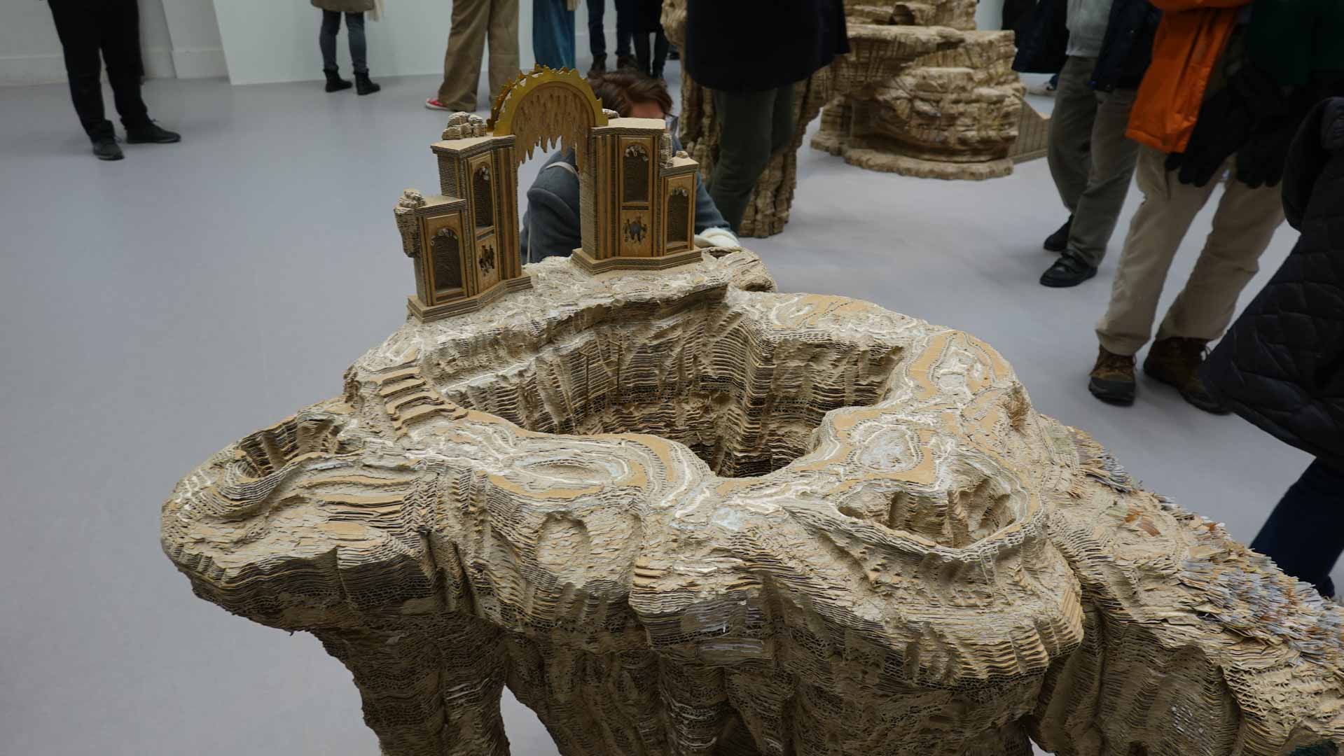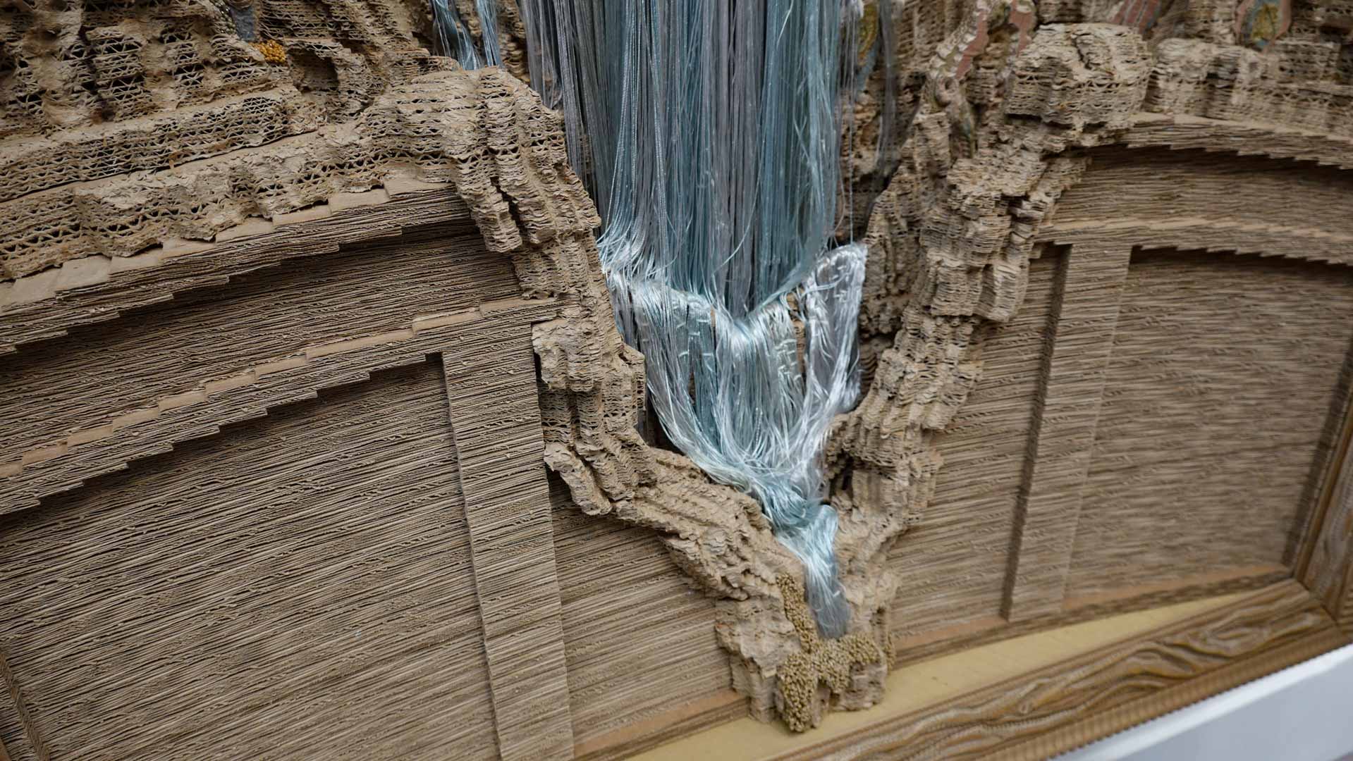 Le titre de l'exposition, Grottesco, renvoie à une légende : celle d'un jeune Romain, tombé par hasard dans une cavité oubliée où, sous terre, il découvre de magnifiques fresques. Ce n'est qu'ultérieurement que l'on reconnaîtra en ces vestiges la Domus Aurea de Néron, ensevelie depuis des siècles. À partir de ce palais qui semblait être une grotte naît le « grotesque » — un style où le végétal, l'architectural, le fantastique s'enlacent dans un imaginaire foisonnant.