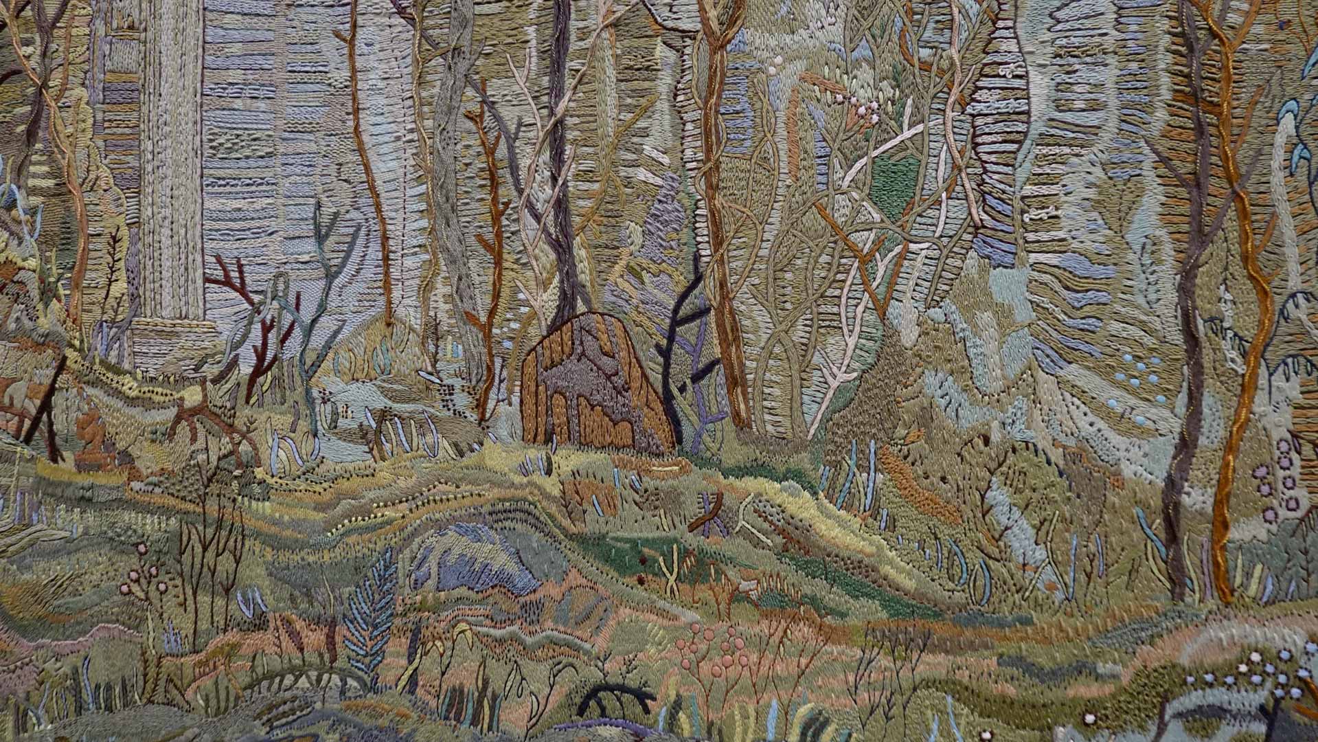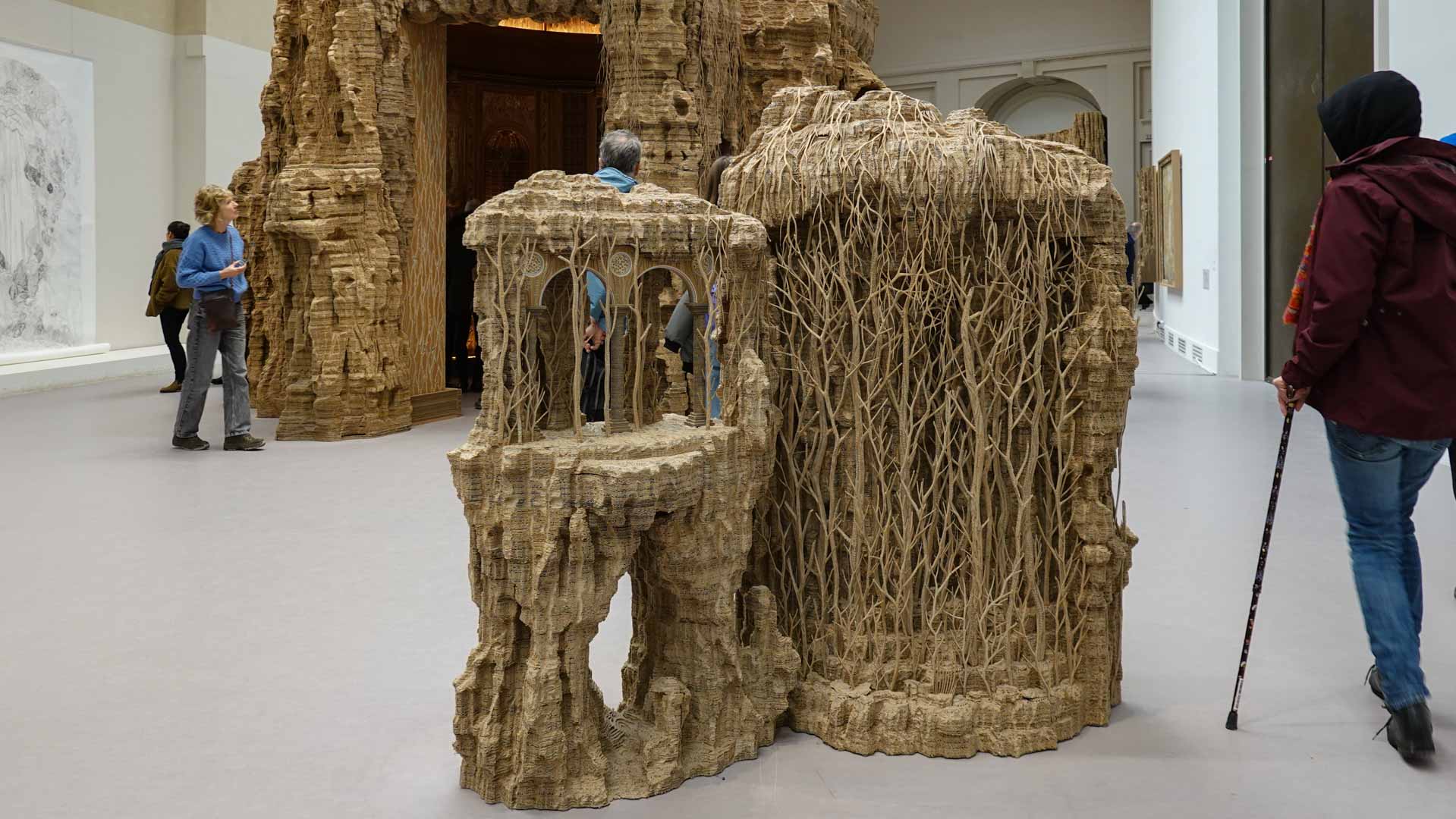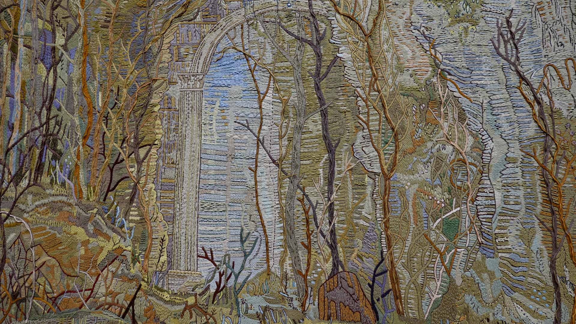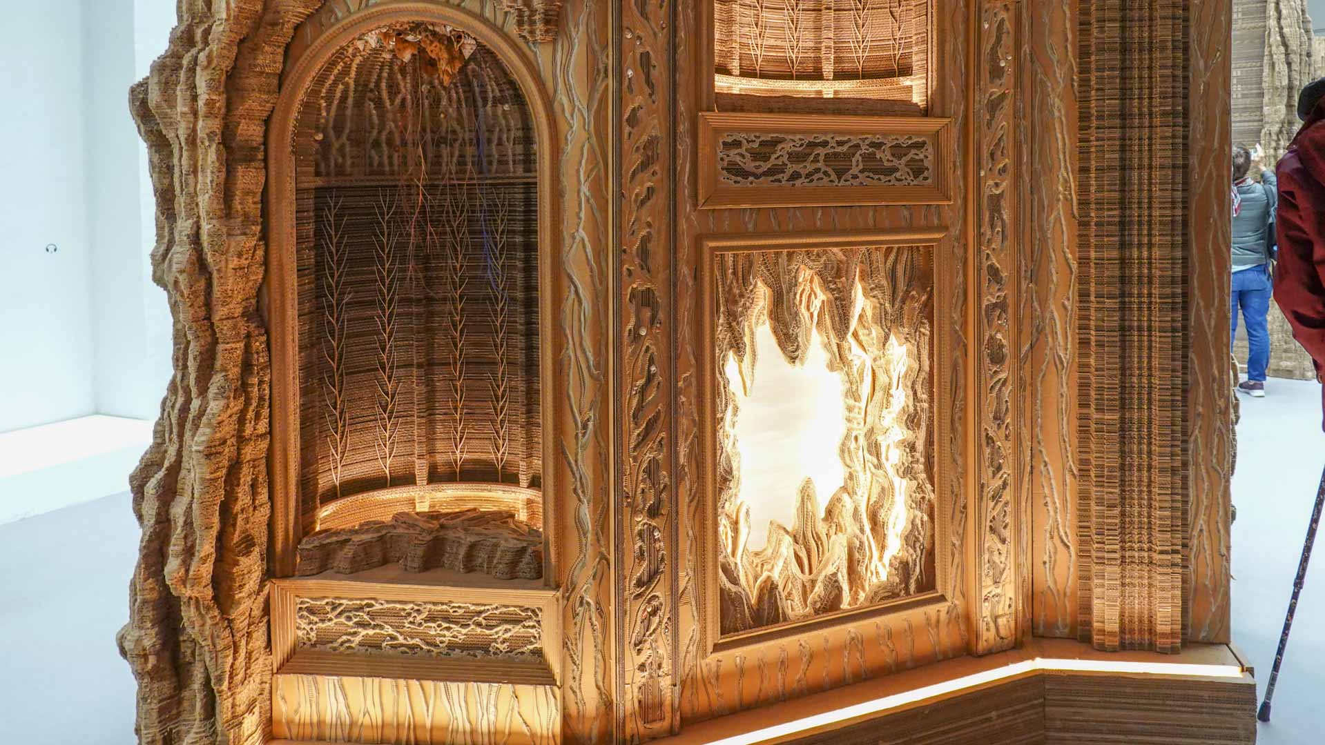 Le titre de l'exposition, Grottesco, renvoie à une légende : celle d'un jeune Romain, tombé par hasard dans une cavité oubliée où, sous terre, il découvre de magnifiques fresques. Ce n'est qu'ultérieurement que l'on reconnaîtra en ces vestiges la Domus Aurea de Néron, ensevelie depuis des siècles. À partir de ce palais qui semblait être une grotte naît le « grotesque » — un style où le végétal, l'architectural, le fantastique s'enlacent dans un imaginaire foisonnant.