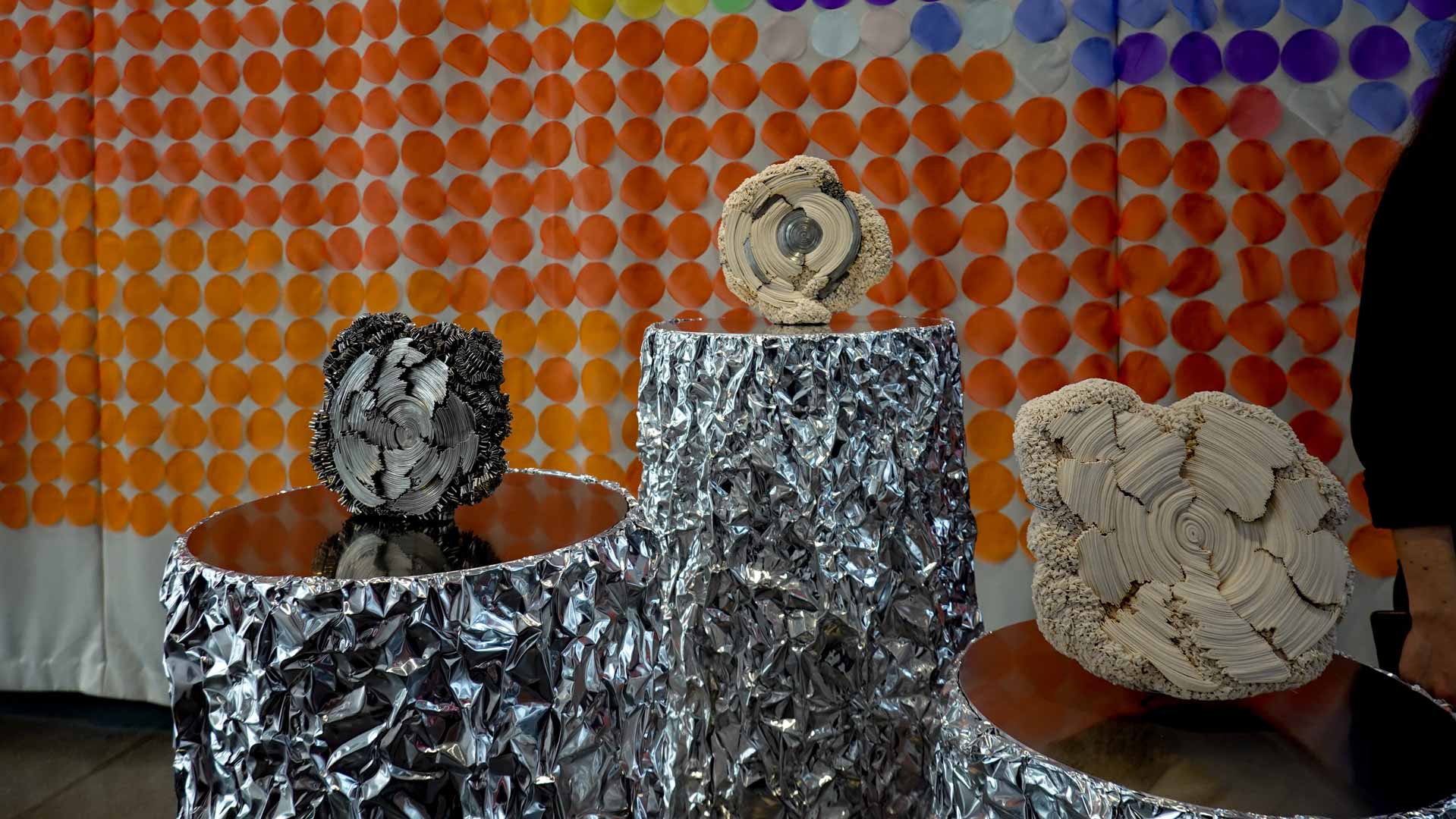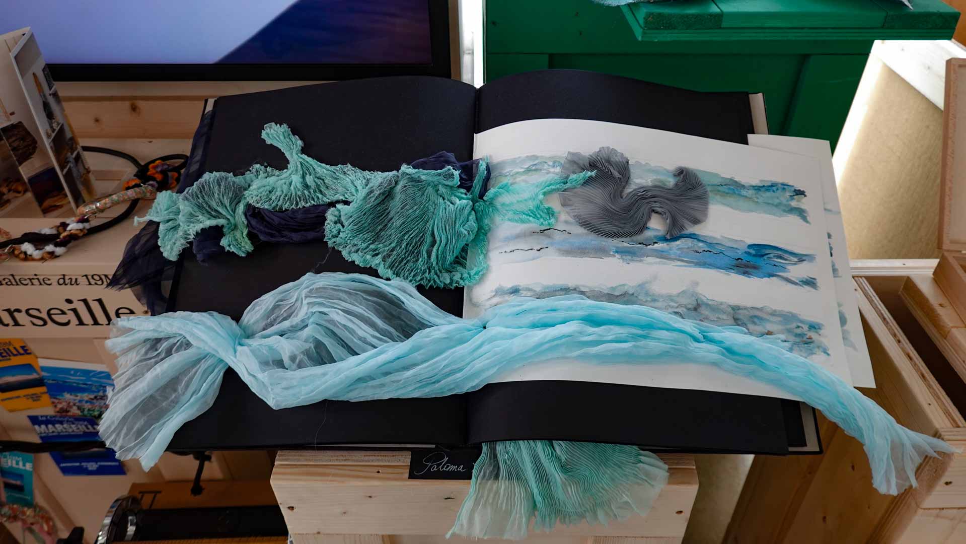 L’eau suggère la fluidité et la circulation. Textiles teints, surfaces souples ou compositions aux formes ondoyantes évoquent les mouvements et les transformations qui accompagnent les processus de création.