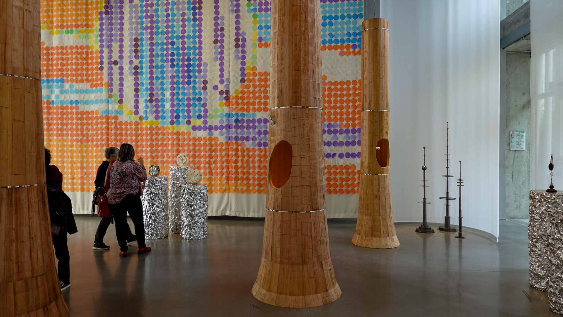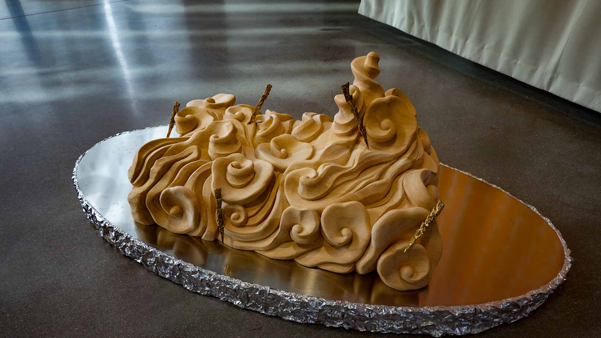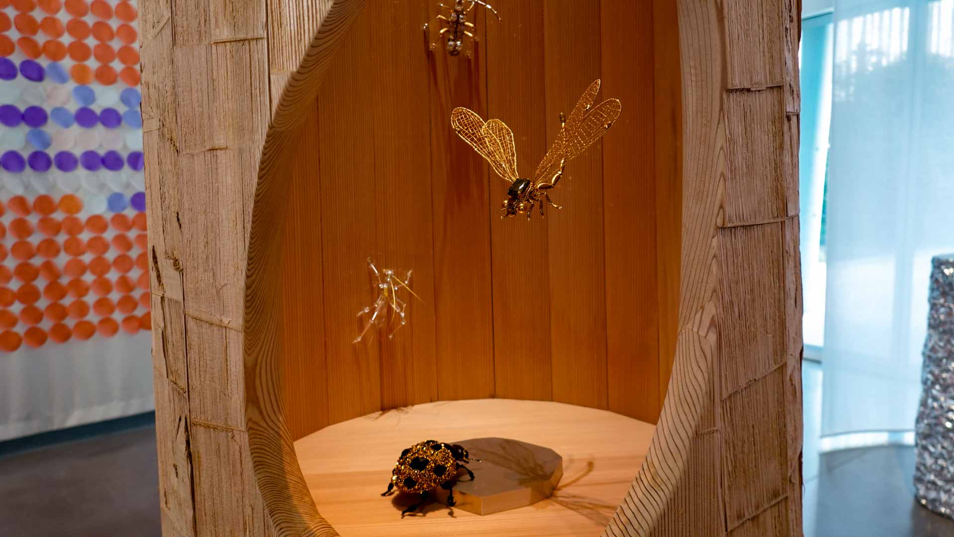 Le vent introduit le mouvement et la légèreté. Installations suspendues, textiles plissés ou formes aériennes jouent avec la transparence et la circulation de l’air, donnant au parcours un rythme et une respiration.