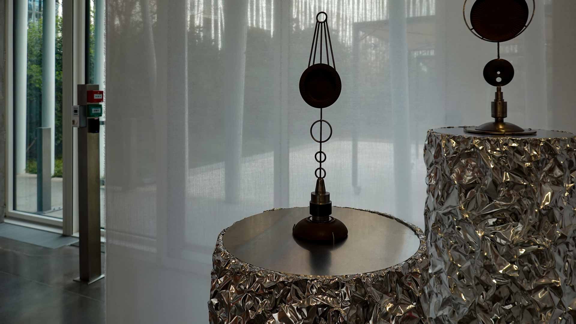 l’air renvoie à l’espace et au vide qui relient les œuvres entre elles. Installations lumineuses, structures ouvertes et compositions minimalistes mettent en évidence la dimension immatérielle de l’exposition, où la lumière, la perception et l’équilibre deviennent des éléments à part entière.