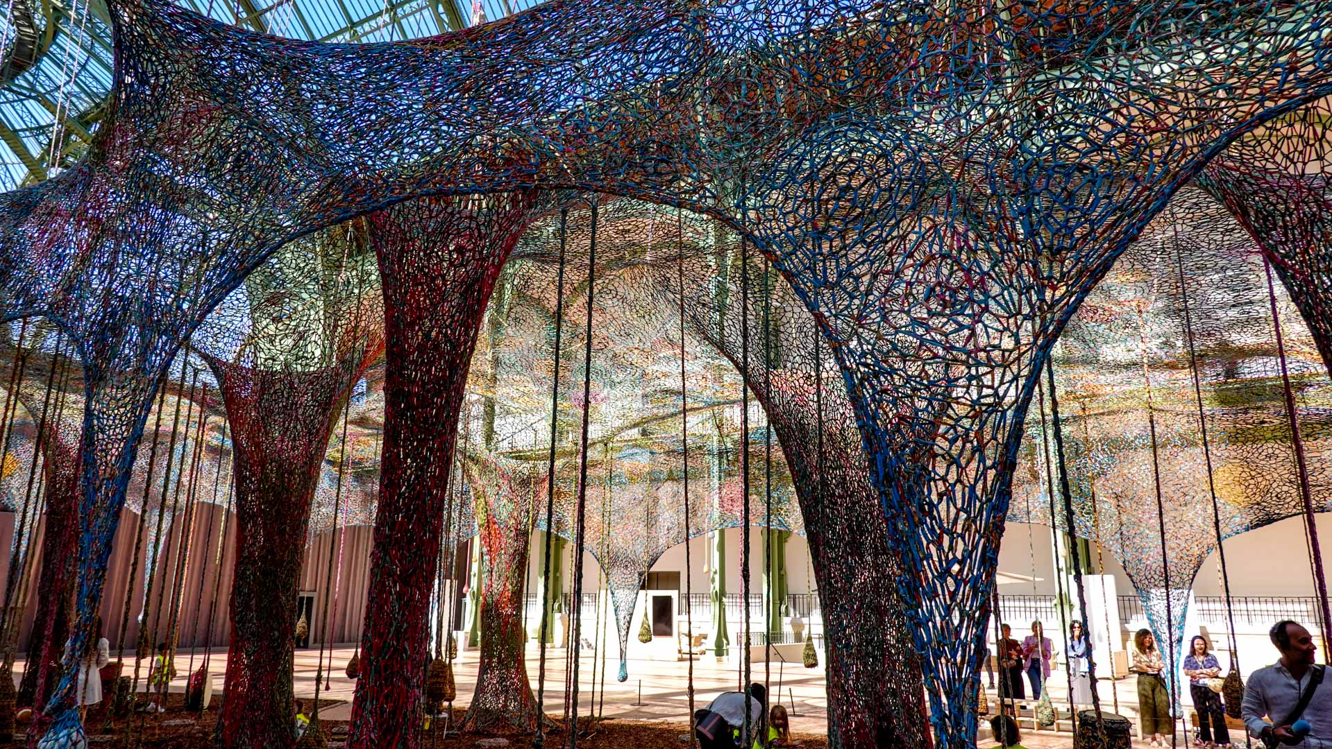 Une installation monumentale en crochet, écorce et épices, invitant à l’émerveillement...